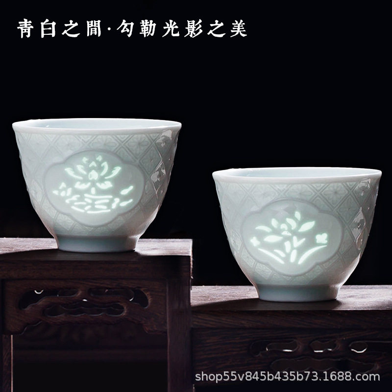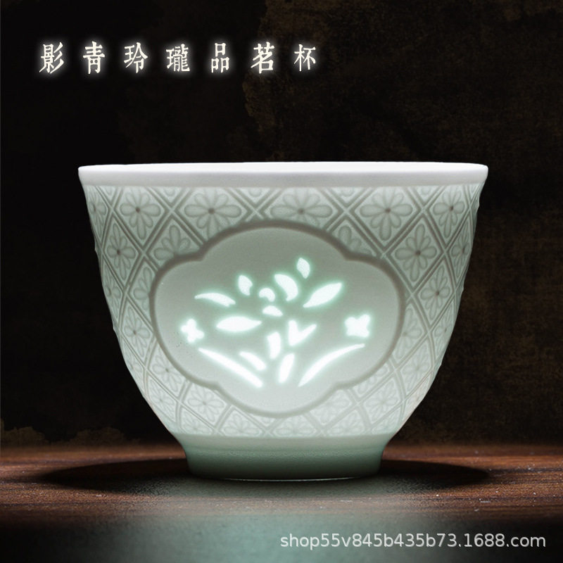 景德镇影青玲珑镂空陶瓷功夫茶杯主人杯单杯高端品茗杯个人杯茶具