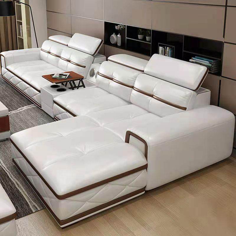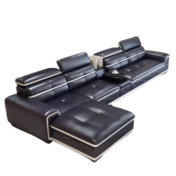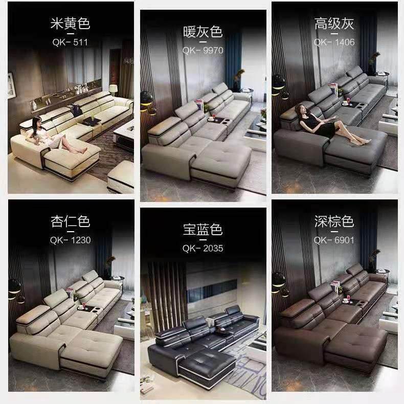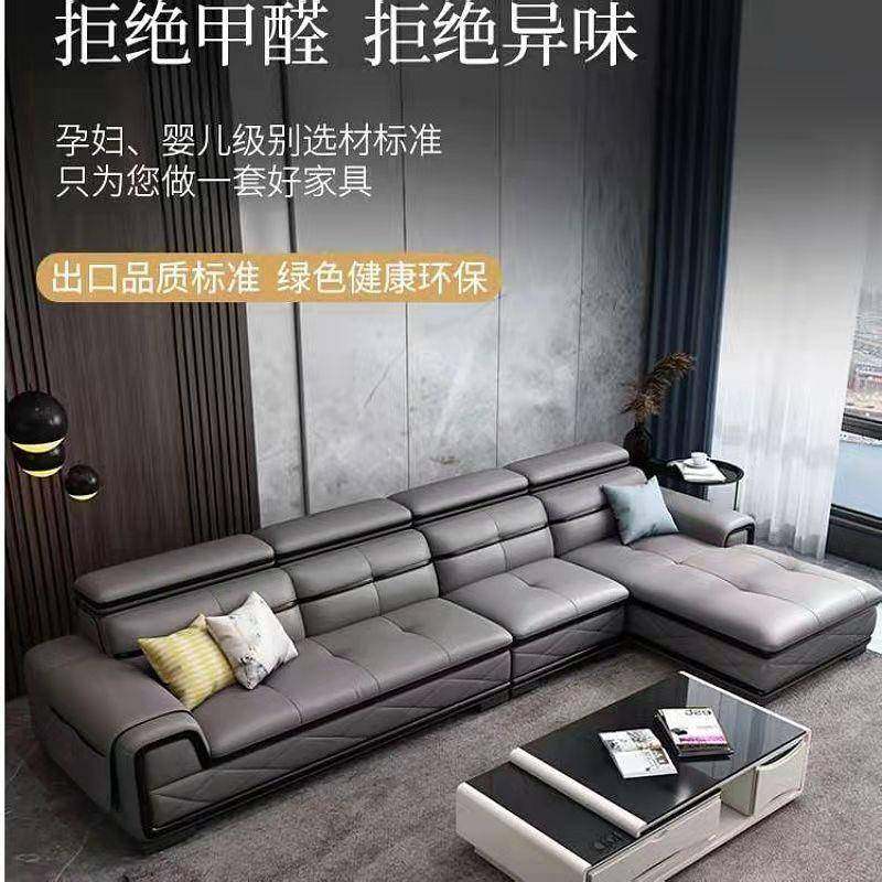 现代皮艺沙发大小户型客厅简约转角贵妃防水猫抓整装布艺实木沙发