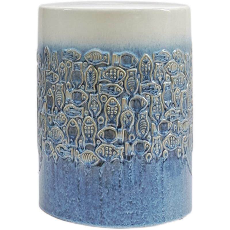 中式渐变陶瓷凳子仿古青花陶艺凳古筝琴瓷墩户外花园绣墩软装圆凳
