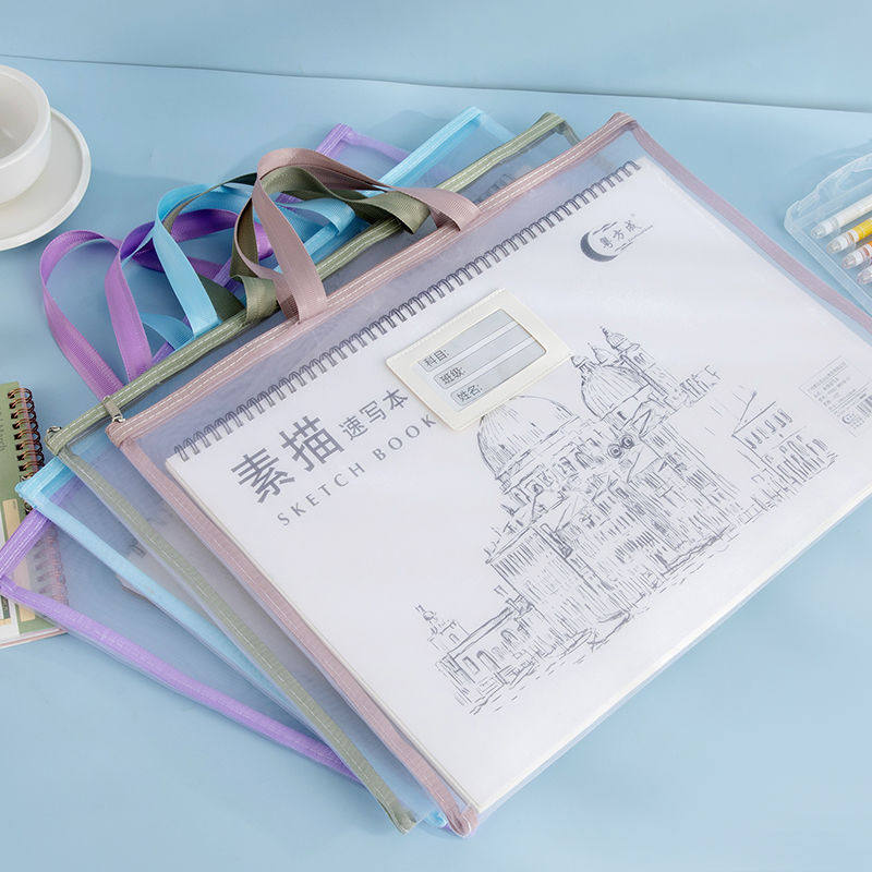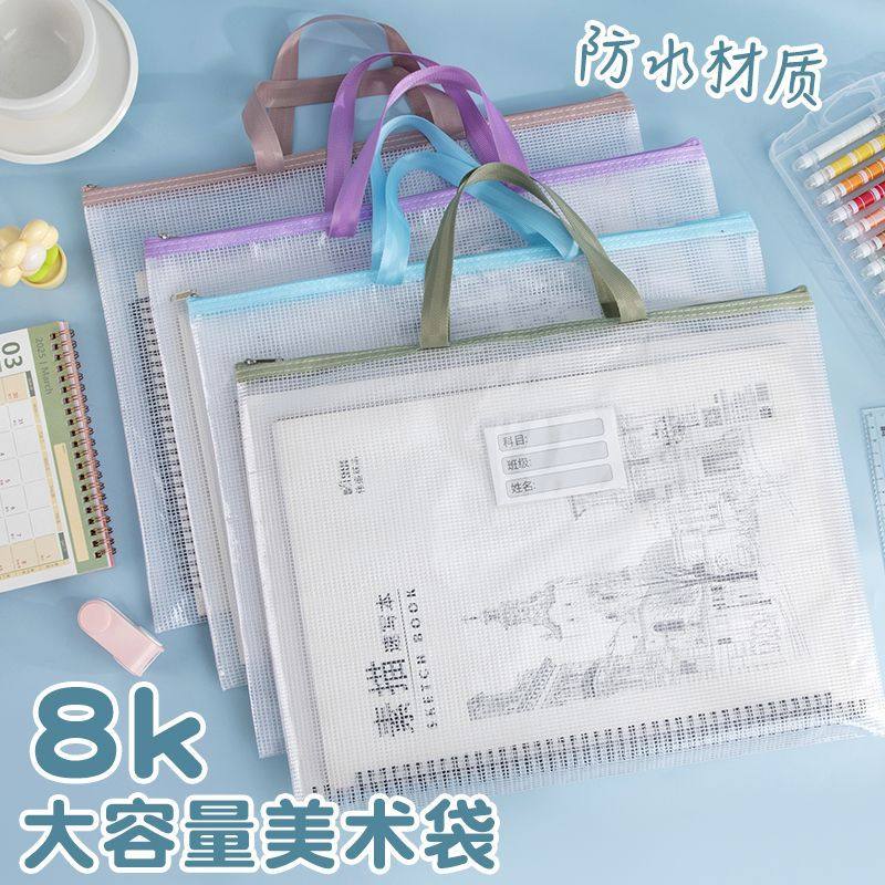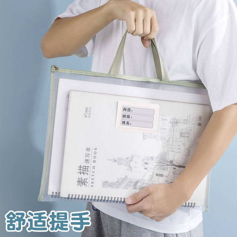 特大号a3文件袋8k美术袋透明拉链袋8k素描纸美术收纳袋画纸档案手提袋小学生绘画工具袋加大容量画稿收纳袋