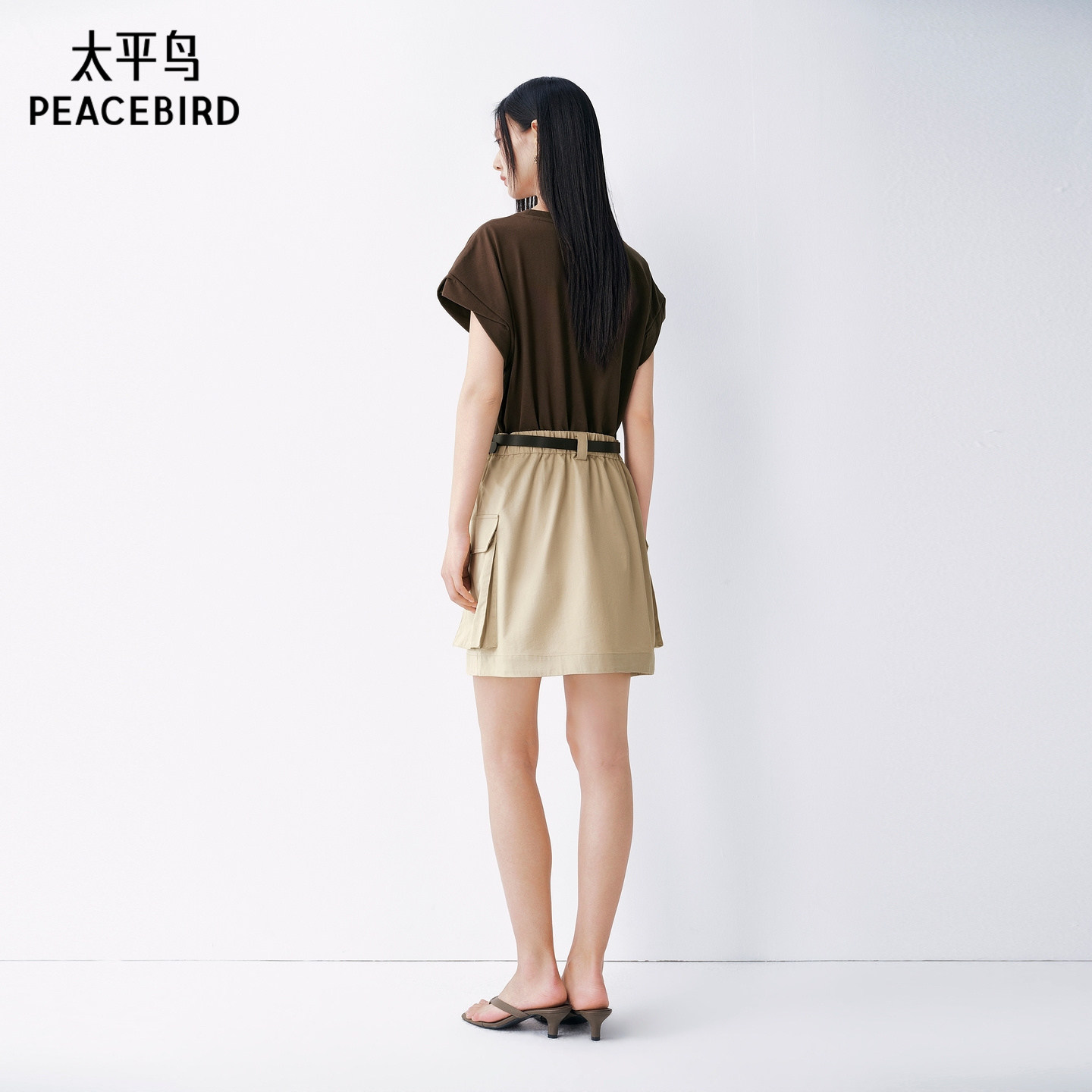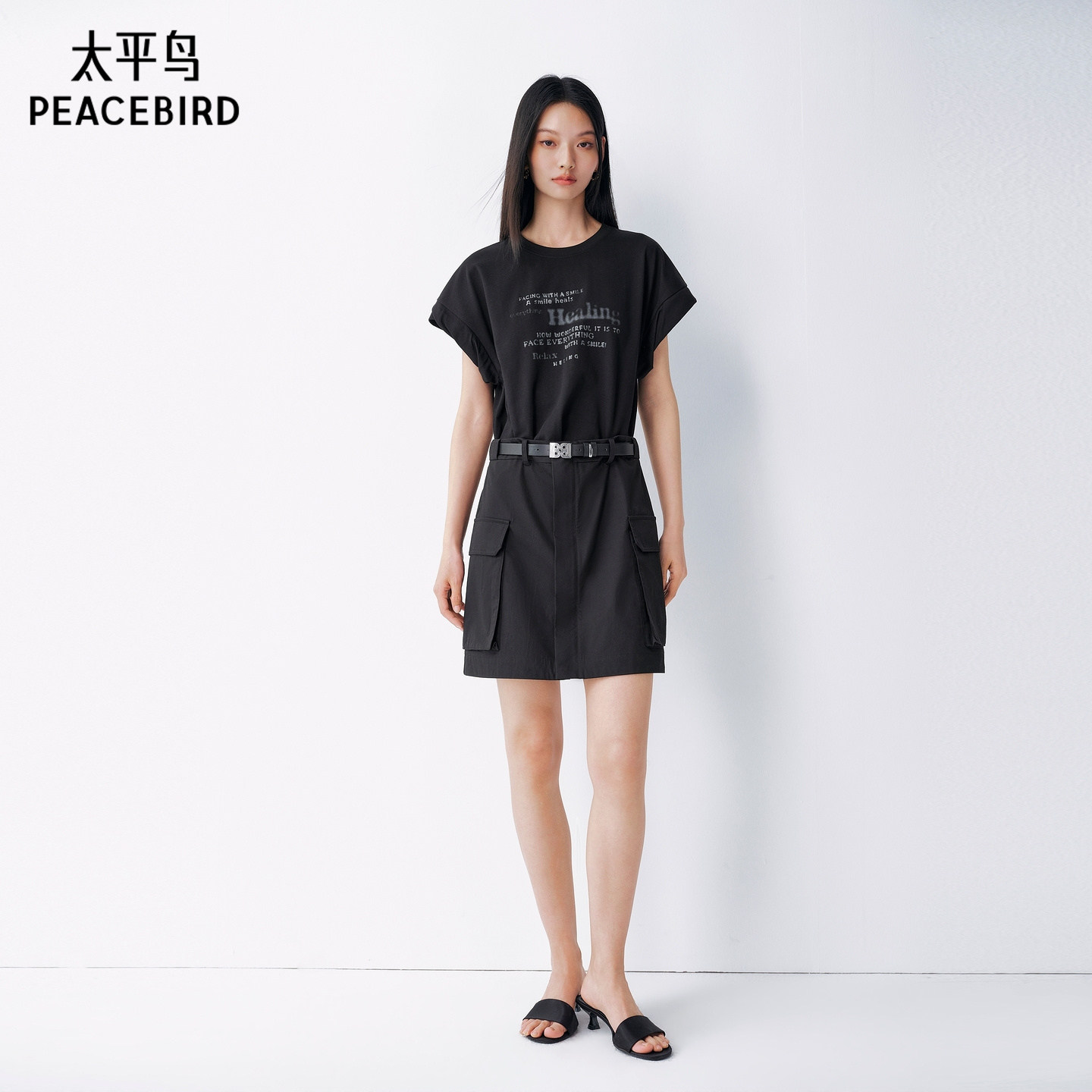 太平鸟女装夏季新款短袖T恤拼接连衣裙时尚品质短裙女A3FAF2331