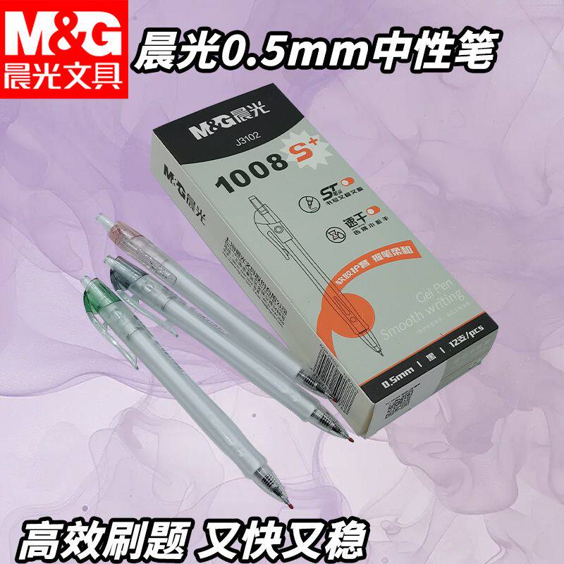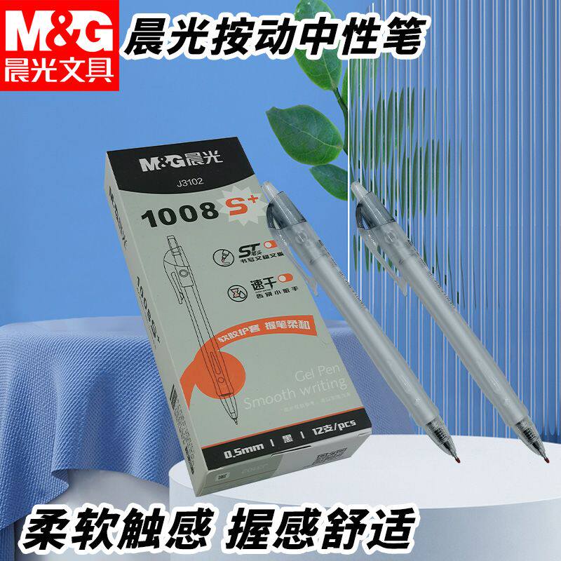 晨光中性笔按动式gp1008学生考试用笔0.5圆珠笔黑色水笔批发速干碳素笔医用处方墨蓝按动笔教师批改专用红笔