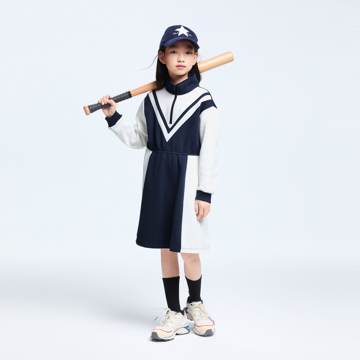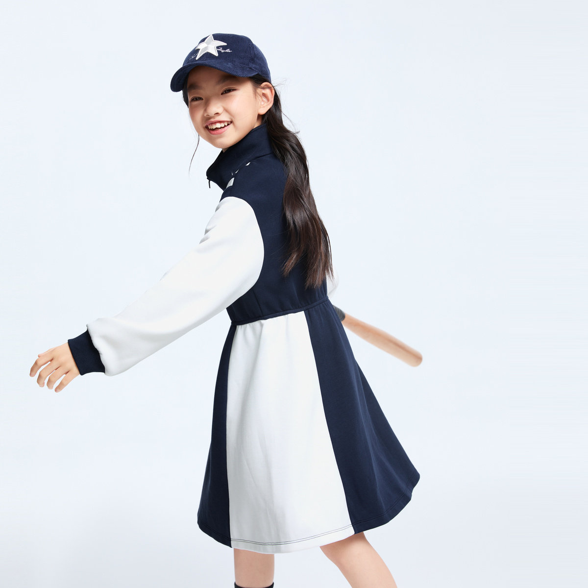 安奈儿童装女童连衣裙春秋运动弹力A字裙子保暖拼色收腰时尚