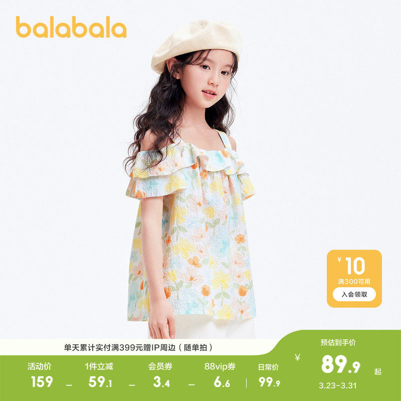 巴拉巴拉童装女童短袖衬衫儿童衬衣中大童夏装荷叶边