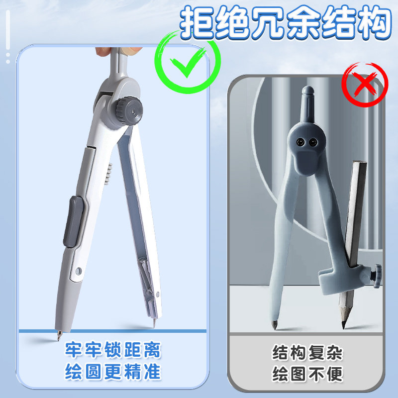 晨光优品锁距圆规初中生专用小学生六年级金属高颜值角度可锁定稳定精准画圆固定多功能文具专业绘图尺规替换
