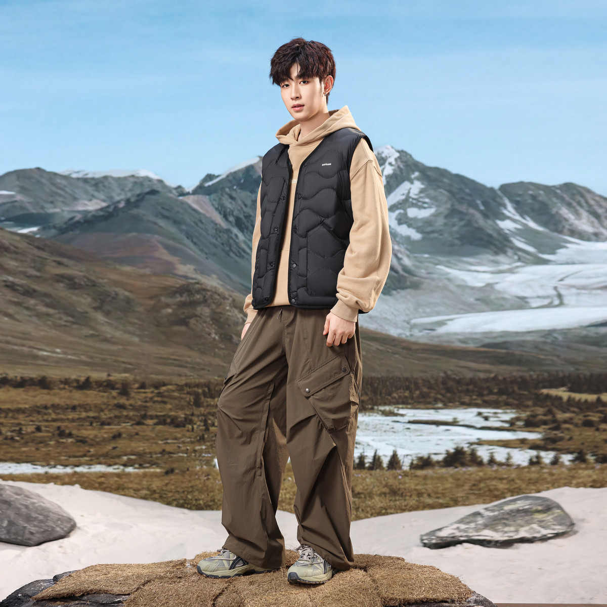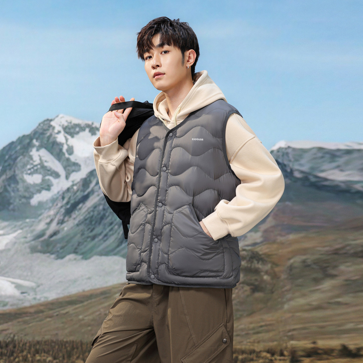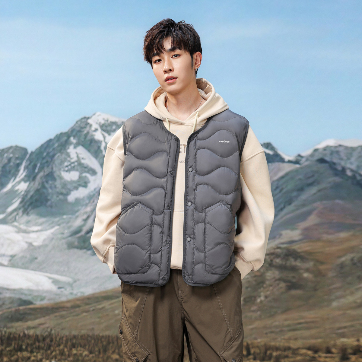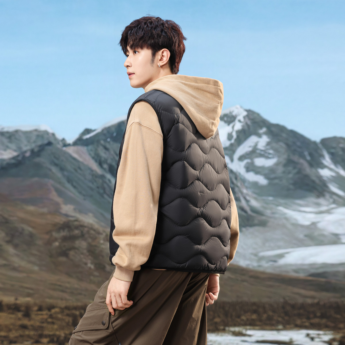 雪中飞羽绒马甲男款时尚白鸭绒坎肩2025秋冬新款保暖背心情侣外套