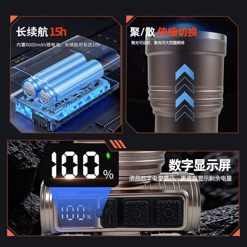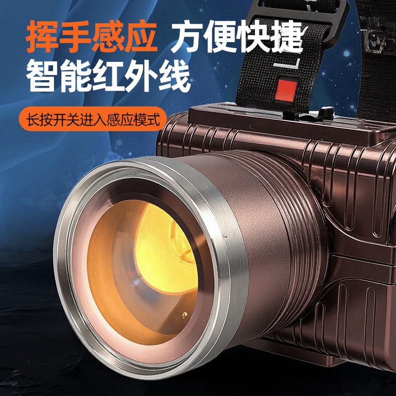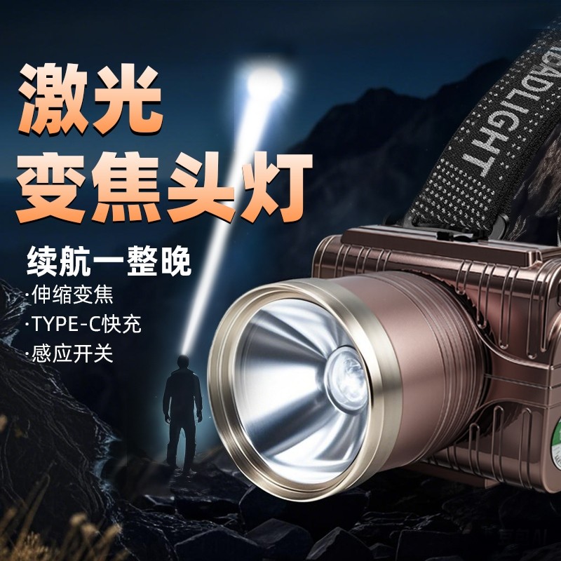 变焦头灯感应超亮远射可充电锂电头戴式超长续航户外强光钓鱼矿灯