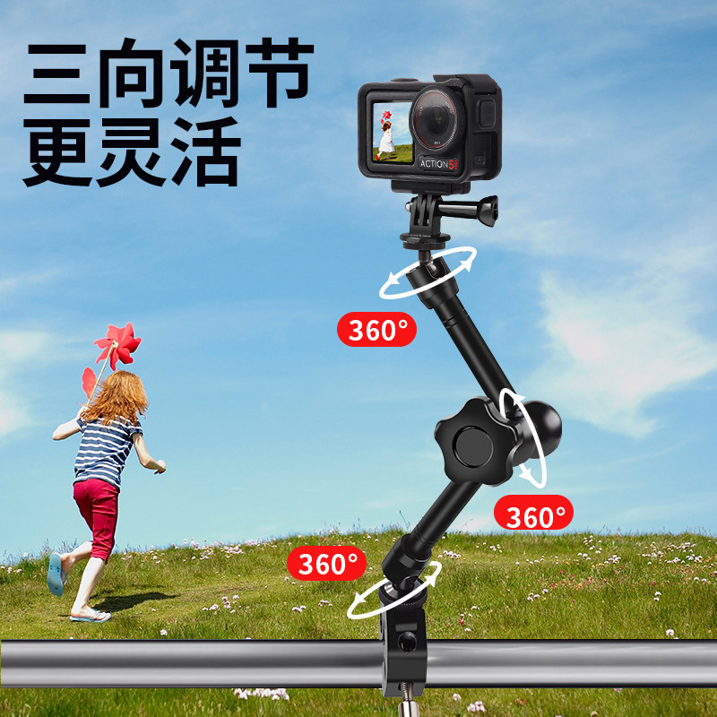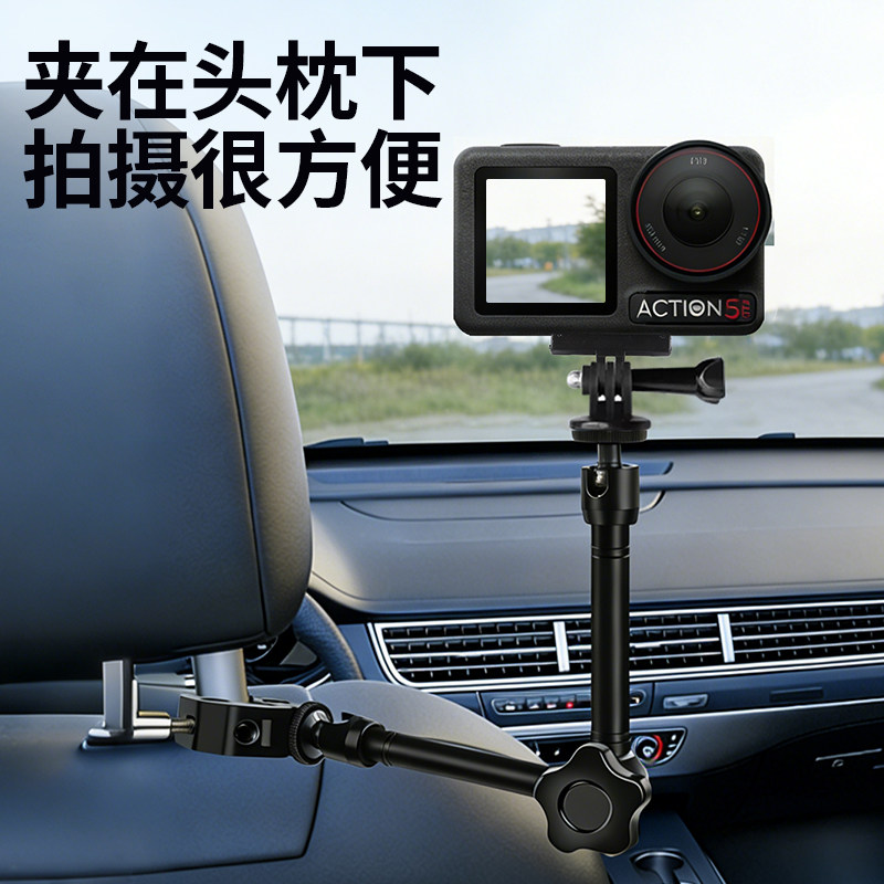 适用大疆Action5pro/4/3专用车载拍摄拍视频支架汽车座椅靠枕金属悬臂可调节角度万向臂蟹钳夹运动相机配件