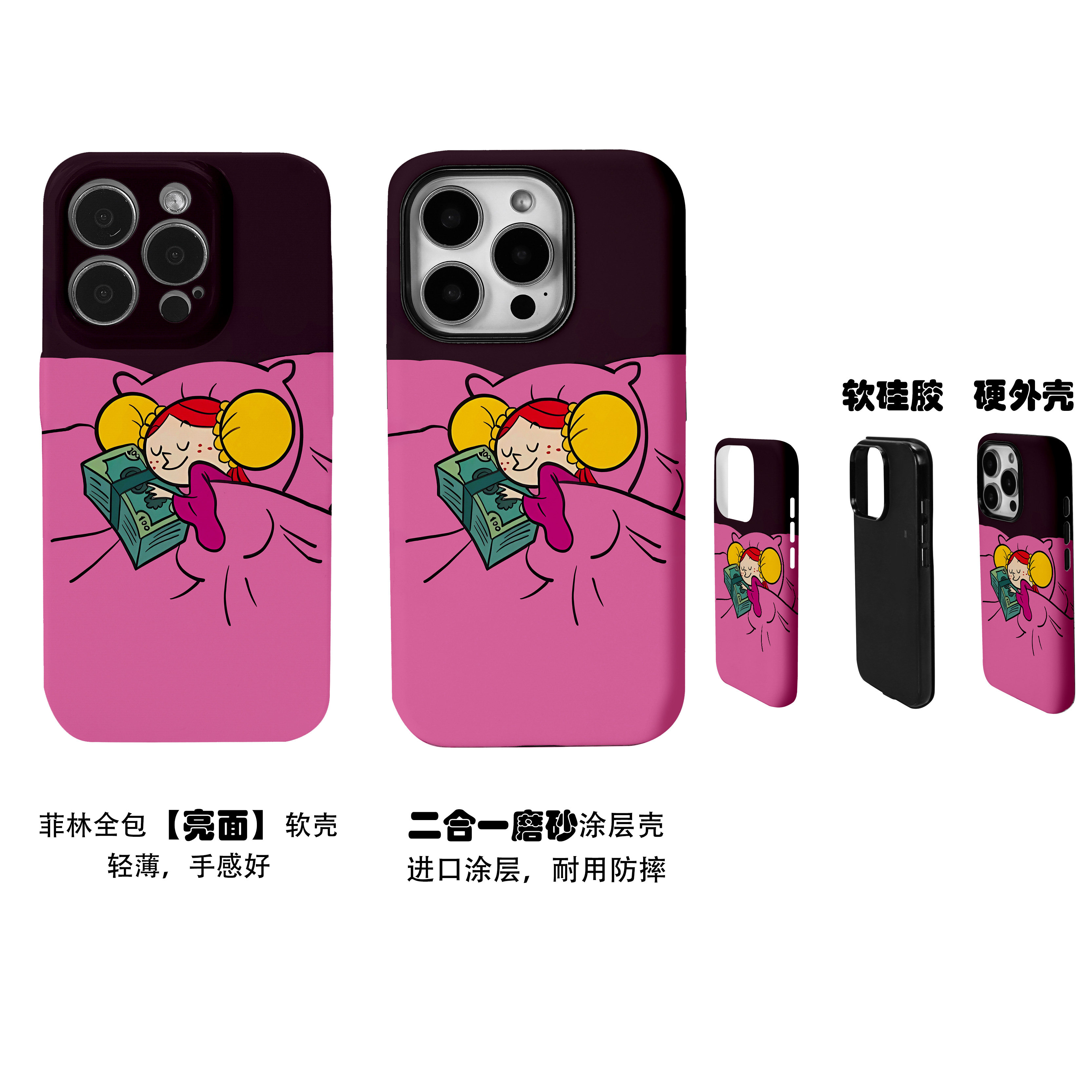 创意欧美风财迷小女生菲林二合一手机壳适用苹果17nova14华为p70mate60小米15opporen14ovivo荣耀300iPhone16