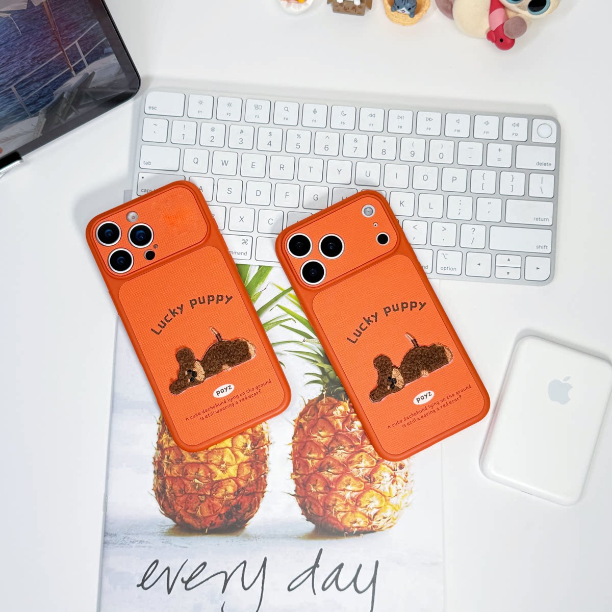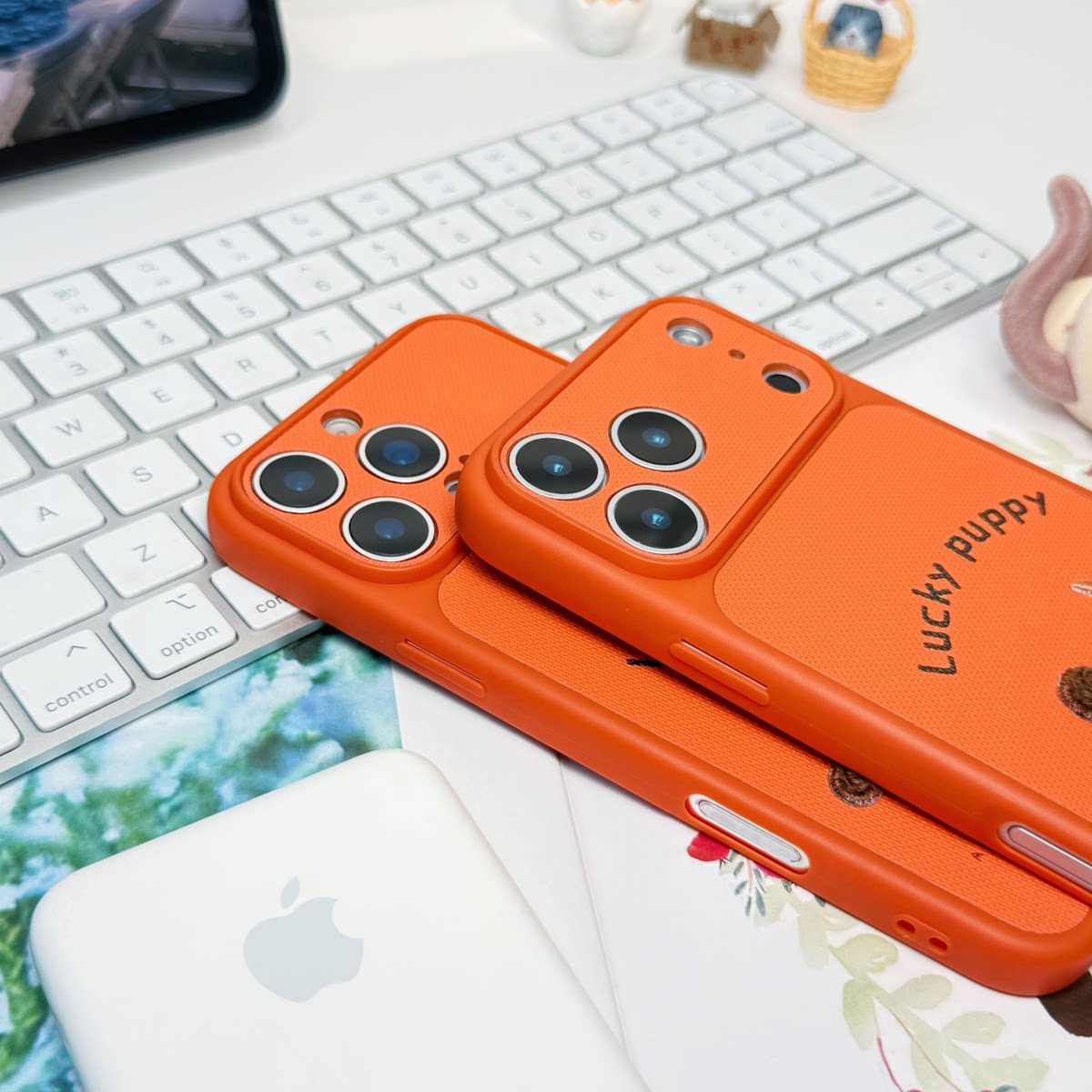 橙活力满满iphone 17promax毛绒趴趴狗苹果16pro手机壳15新款14promax卡通13皮纹全包12手机壳