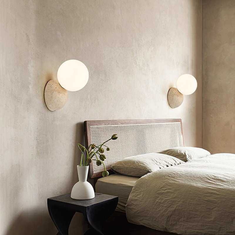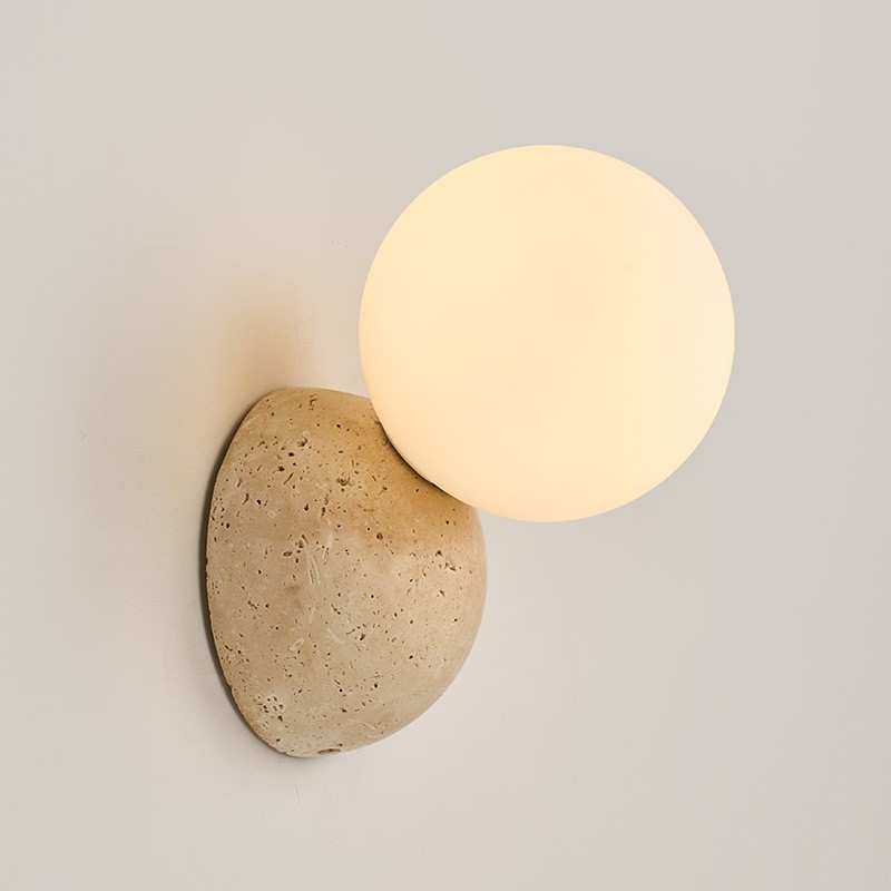 中古风极简黄洞石小壁灯设计师餐厅走廊过道卧室床头墙壁圆球灯饰