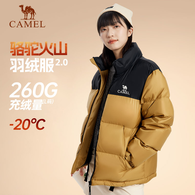 骆驼火山羽绒服女装2025秋冬户外加厚保暖外套短款面包服男女同款