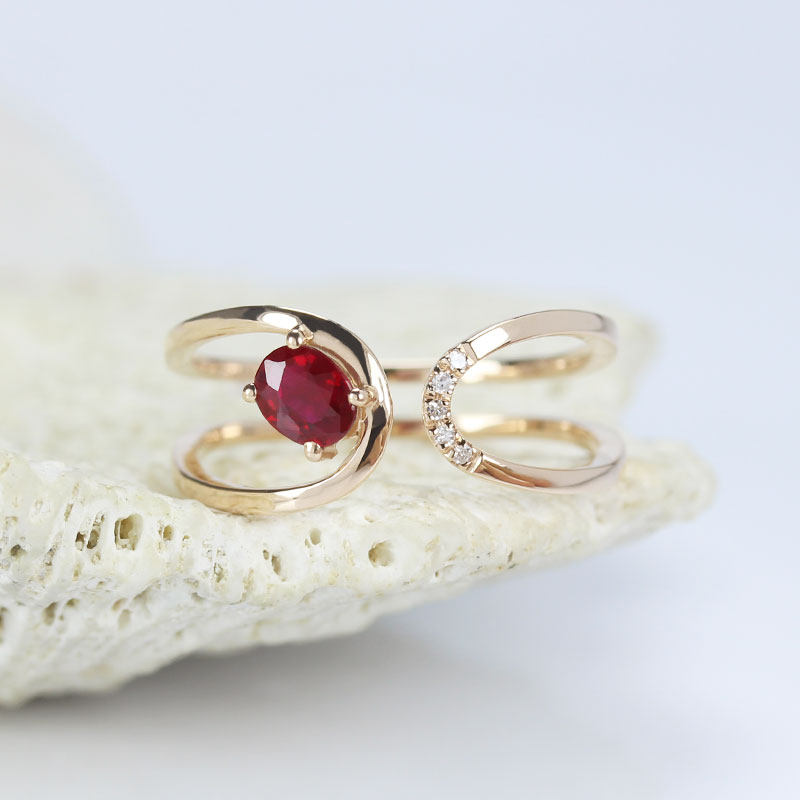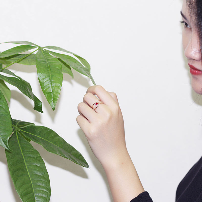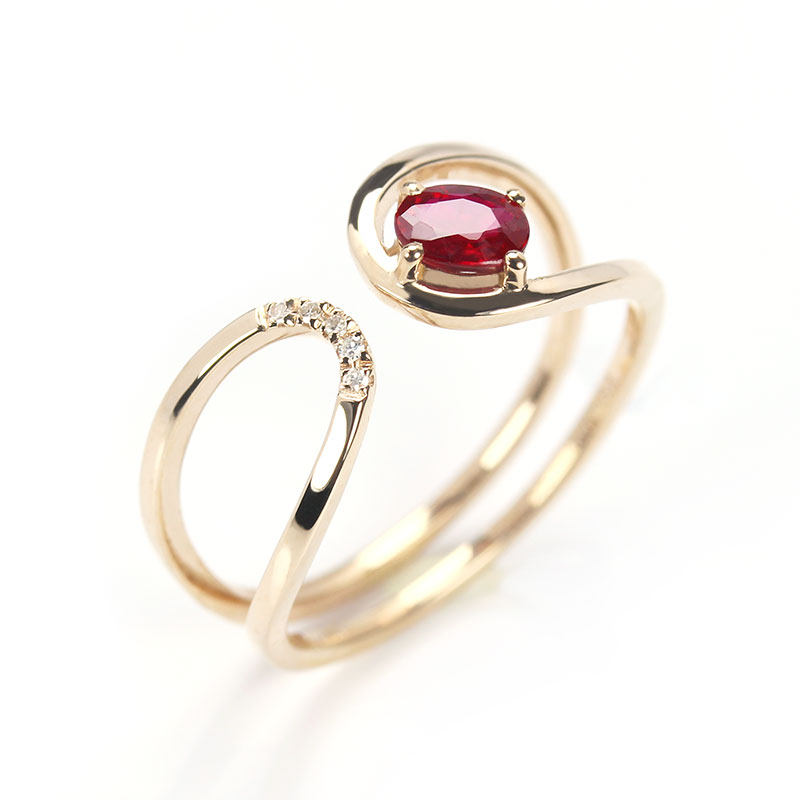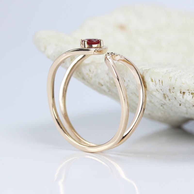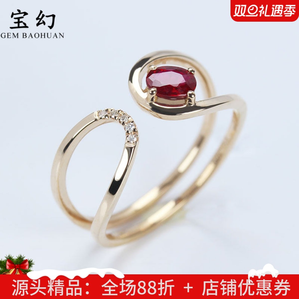 18K玫瑰金天然鸽血红宝石活口戒指 双层黄金镶嵌钻石女款开口指环