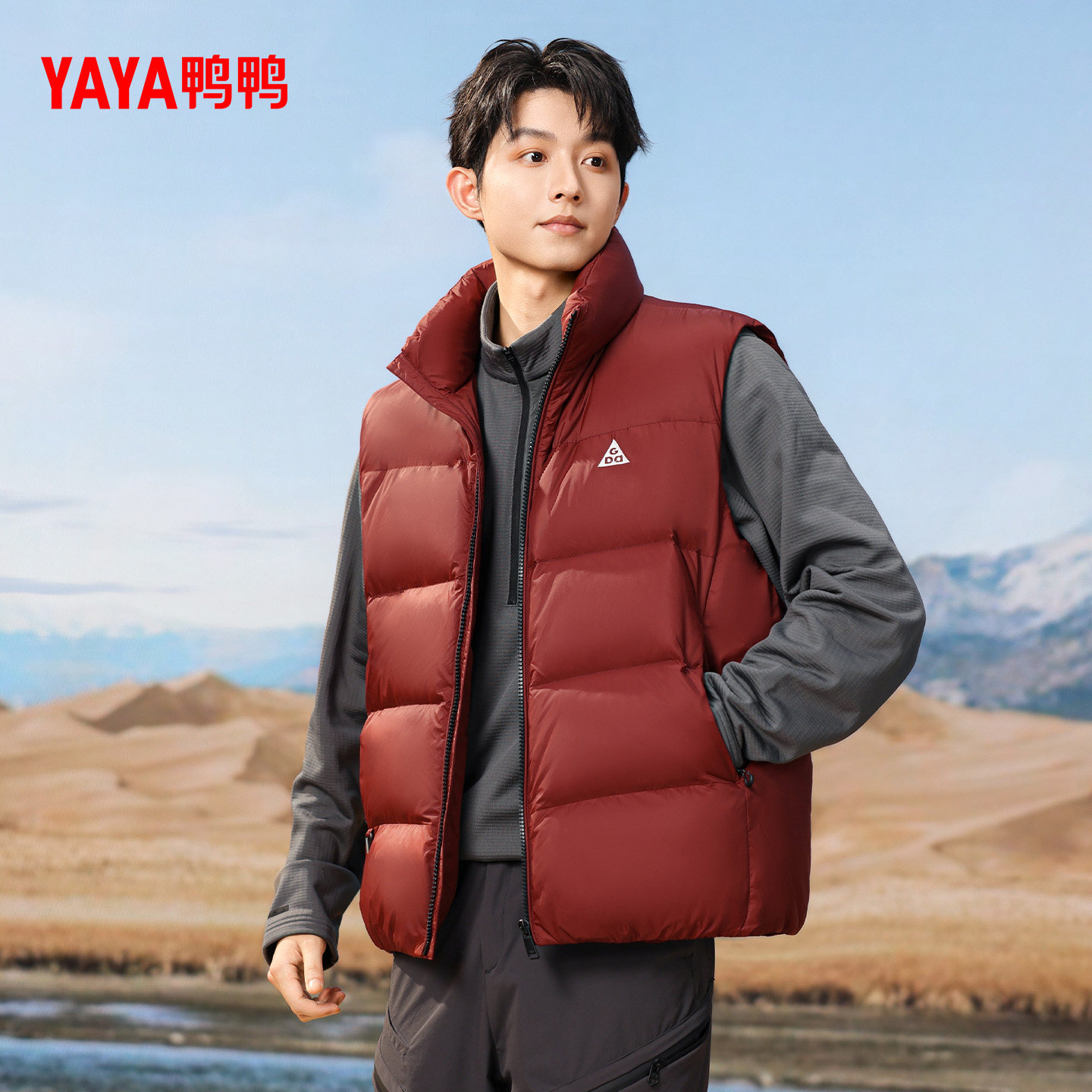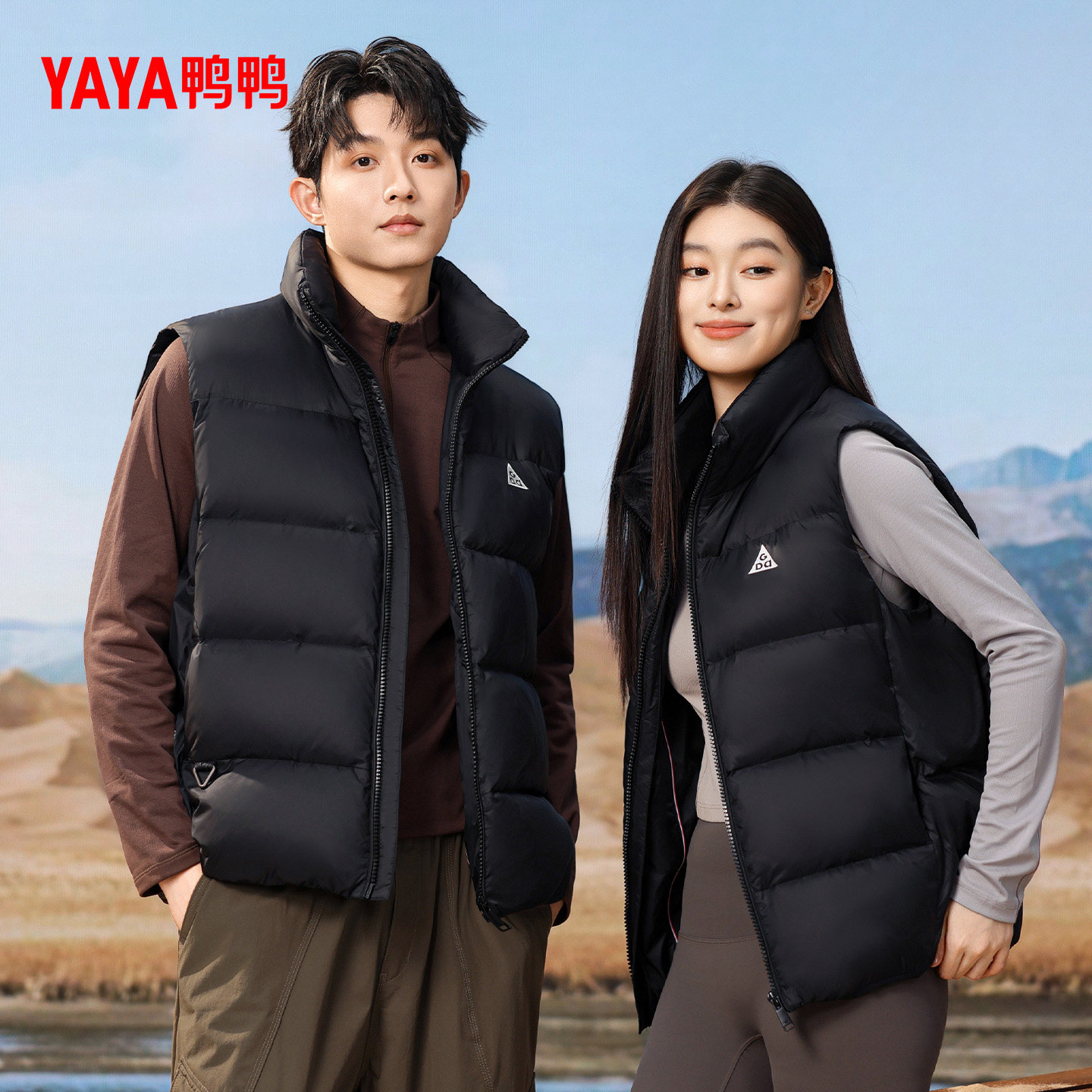 鸭鸭羽绒服男女同款2025年秋冬季新品时尚休闲立领鸭绒保暖马甲M