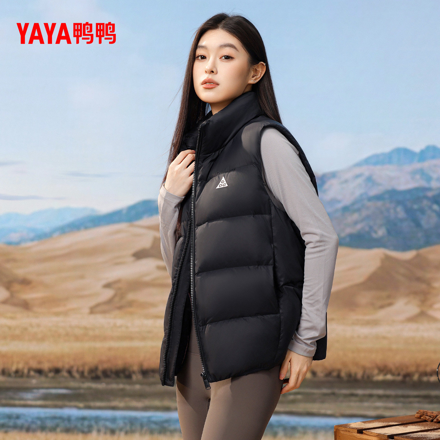 鸭鸭露营羽绒服马甲女2025冬季修身显瘦内搭背心舒适蓬松马夹外套