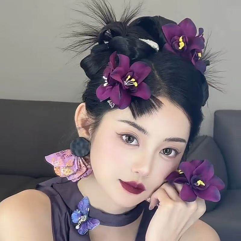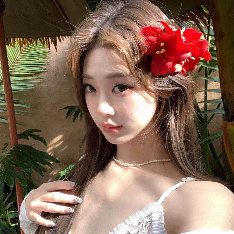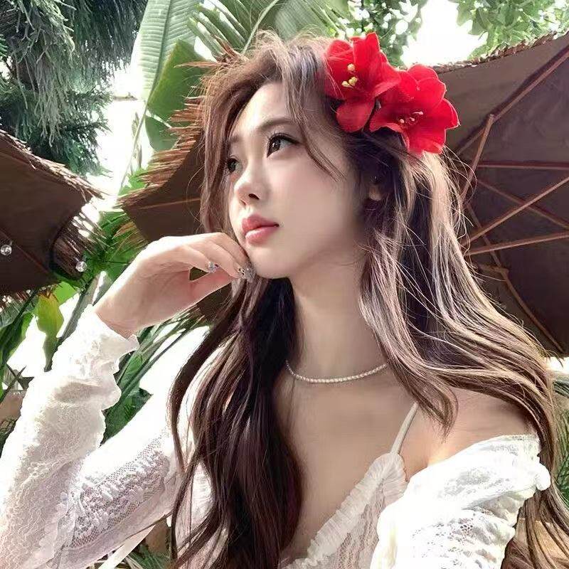 新中式红色仿真花朵发夹美人纯欲鸭嘴夹女氛围感侧边刘海夹子头饰