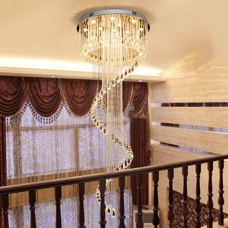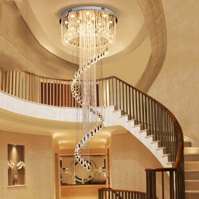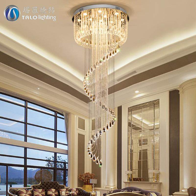 后现代轻奢水晶吊灯别墅客厅复式楼大吊灯个性大厅楼梯中空吊线灯