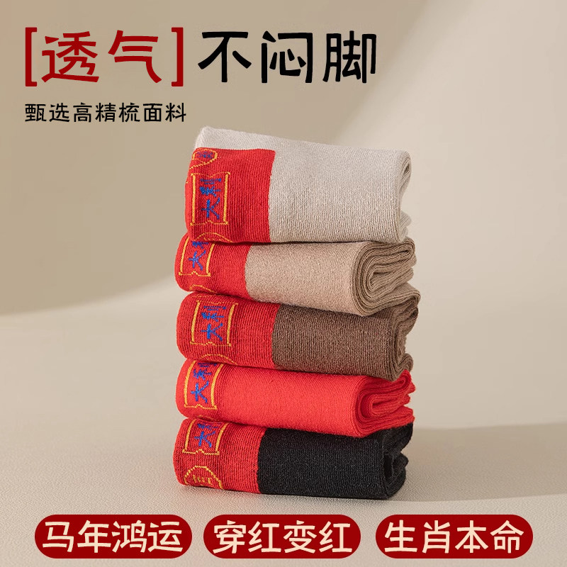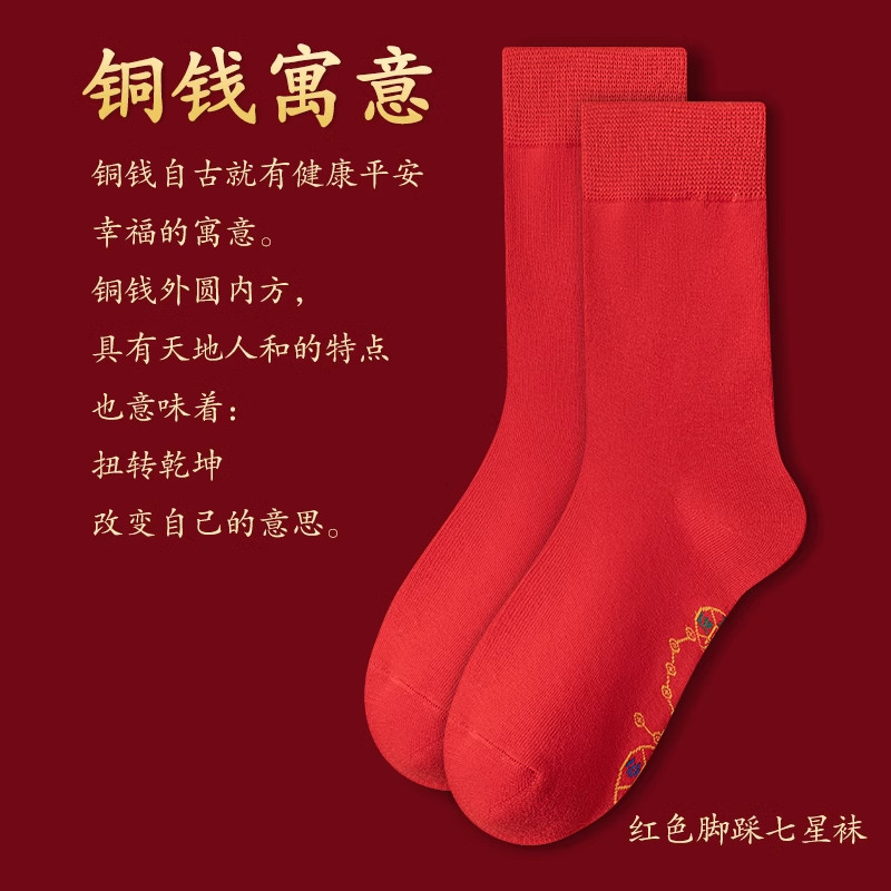 七星连珠红袜子男款秋冬季保暖中筒袜男女属马本命年长袜新年福袜