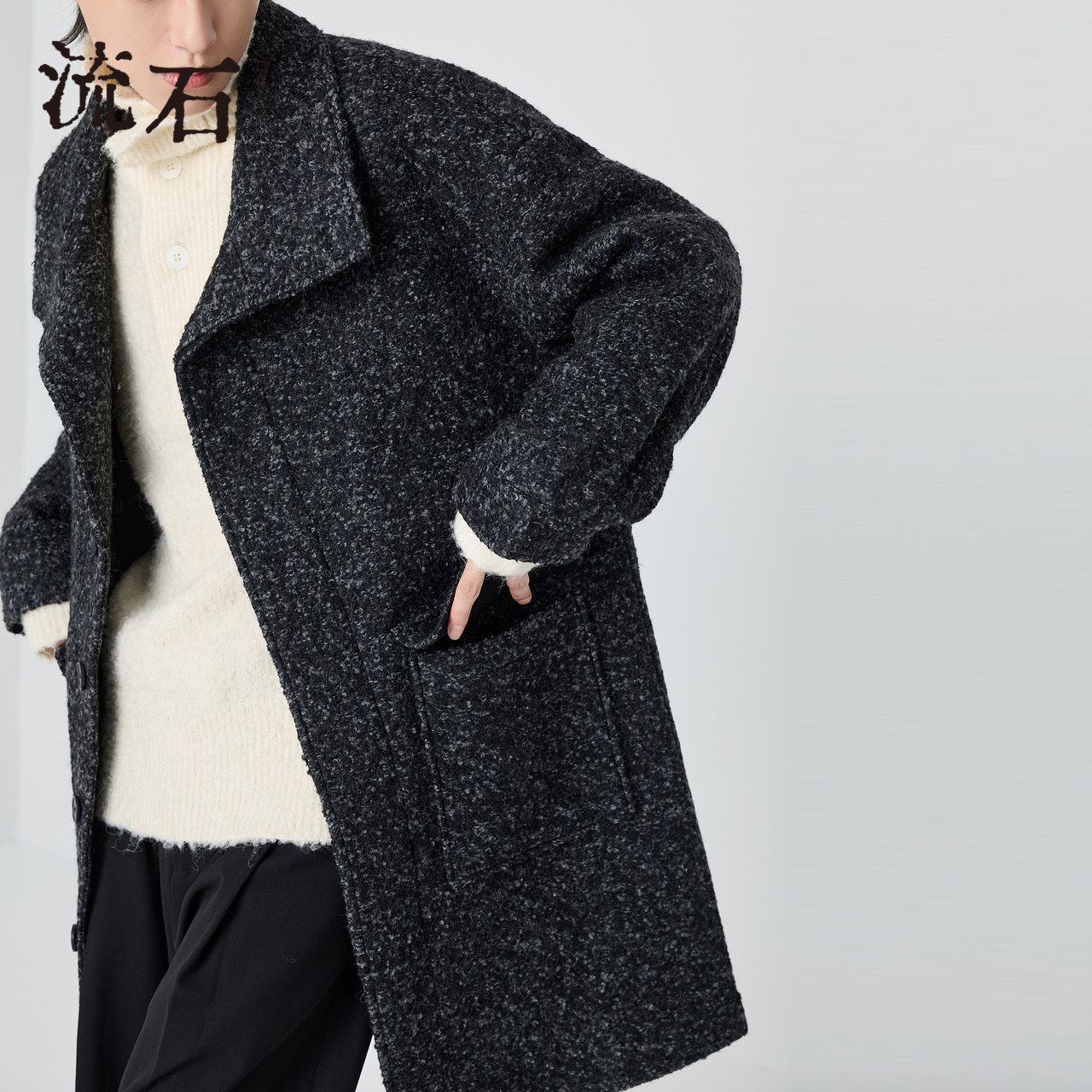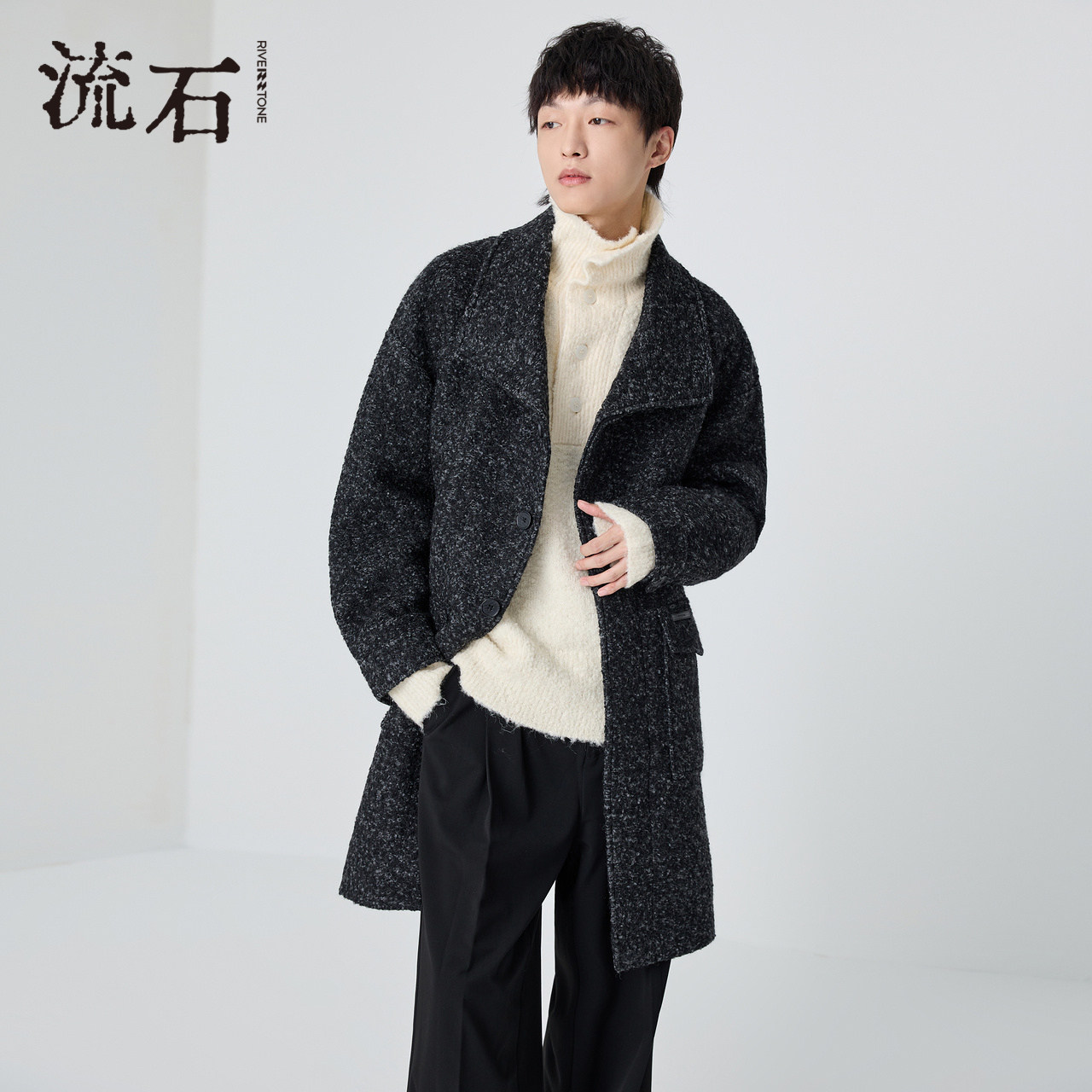 流石男装高端时尚长款羊毛呢大衣2025年冬季新款男士宽松保暖外套