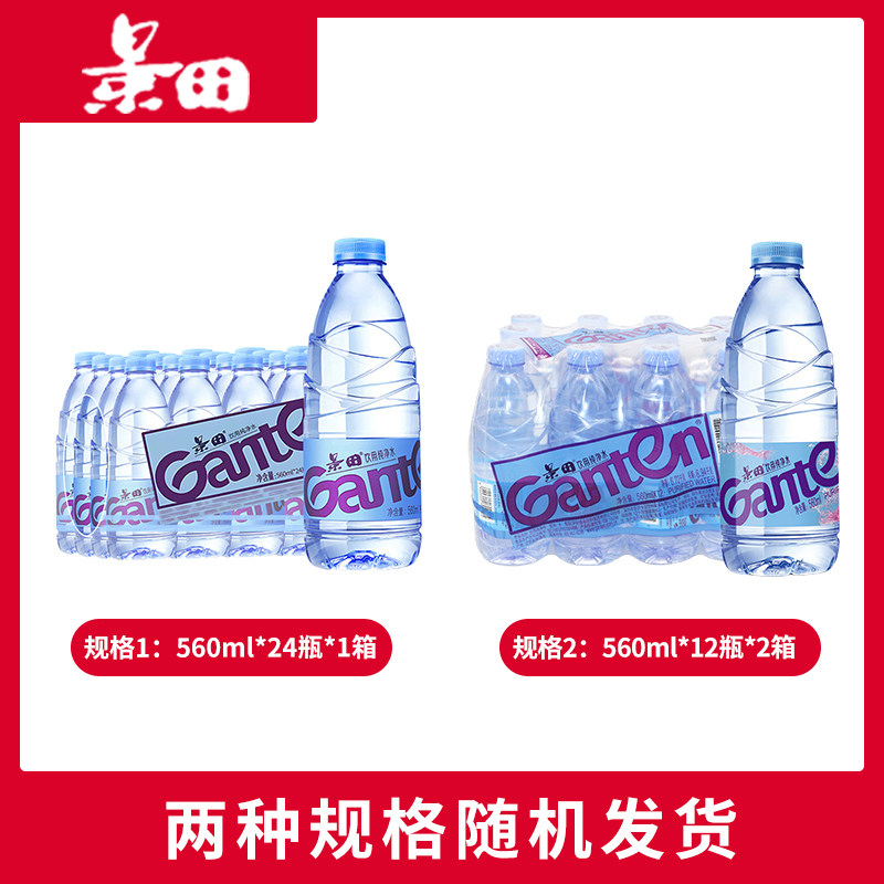 景田饮用纯净水560ml*24瓶整箱塑包包邮会议小瓶装水非矿泉水