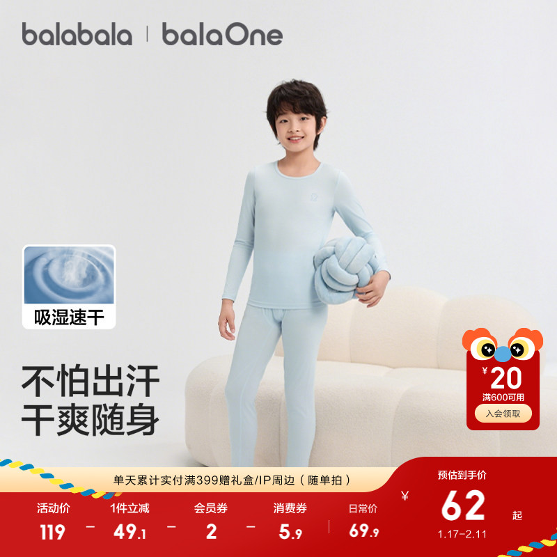 巴拉巴拉女童长袖T恤春秋季新品宝宝打底内衣秋衣两件装吸湿排汗