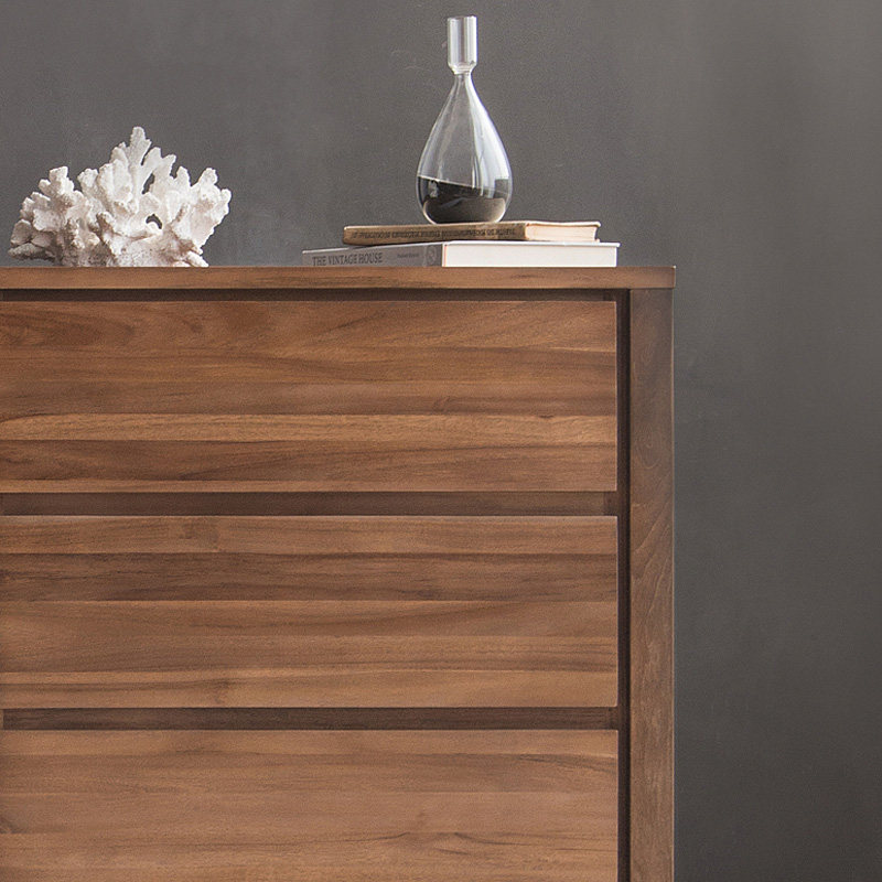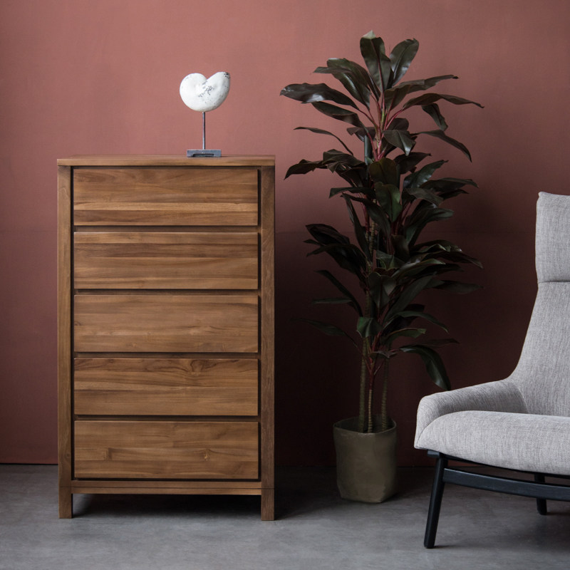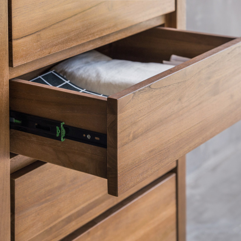 MountainLiving进口柚木家具纯实木五斗柜中古风客厅沙发旁储物柜
