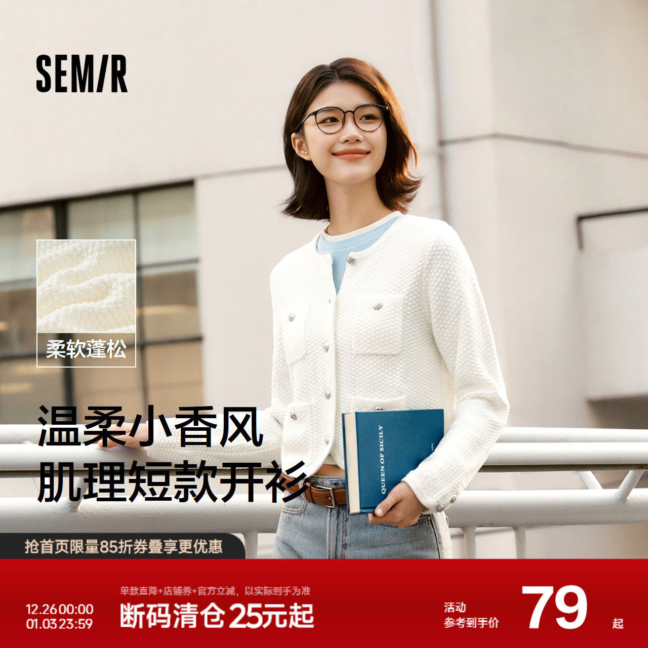 森马针织开衫女短款圆领毛衫显高气质春季温柔小香风肌理上衣时尚