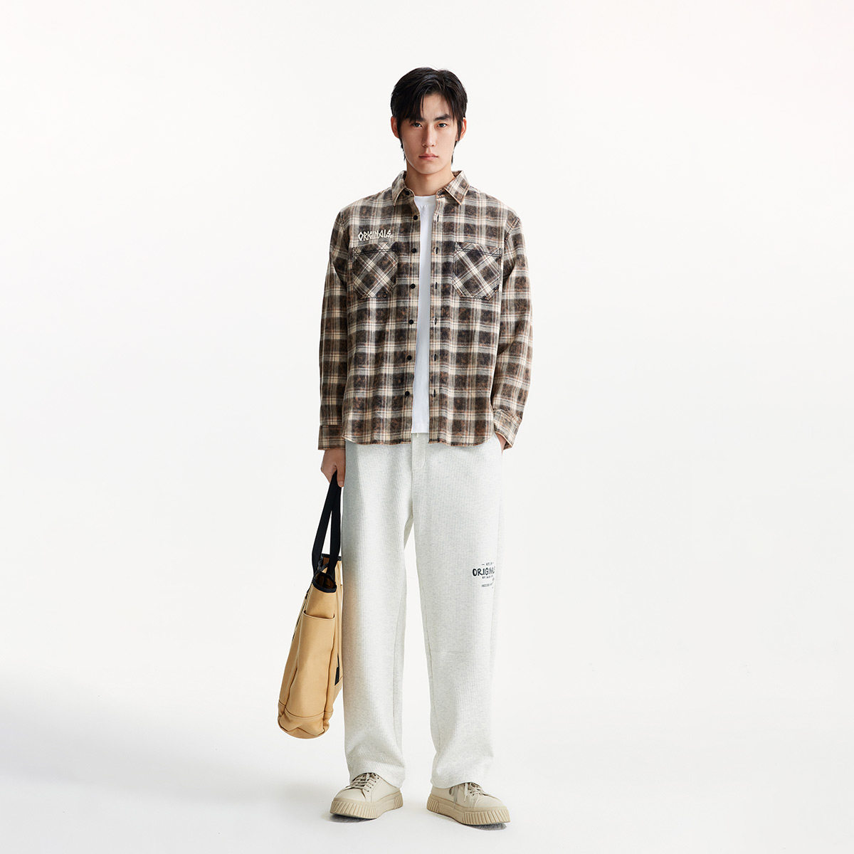 宽松版型,翻领领口,衣身格纹设计