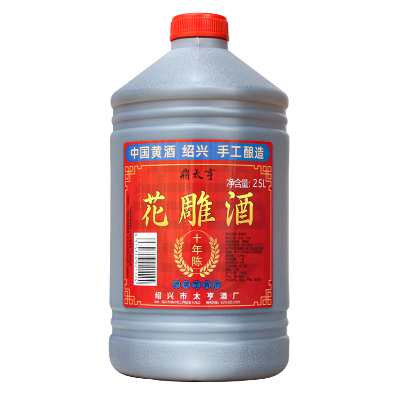 绍兴产黄酒十年陈花雕酒桶装2.5升糯米5斤料酒手工家用酿造自饮