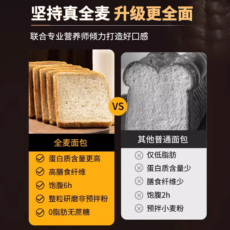 全麦面包0脂无糖低脂无饱腹粗粮代餐早餐主食黑麦吐司零食健身
