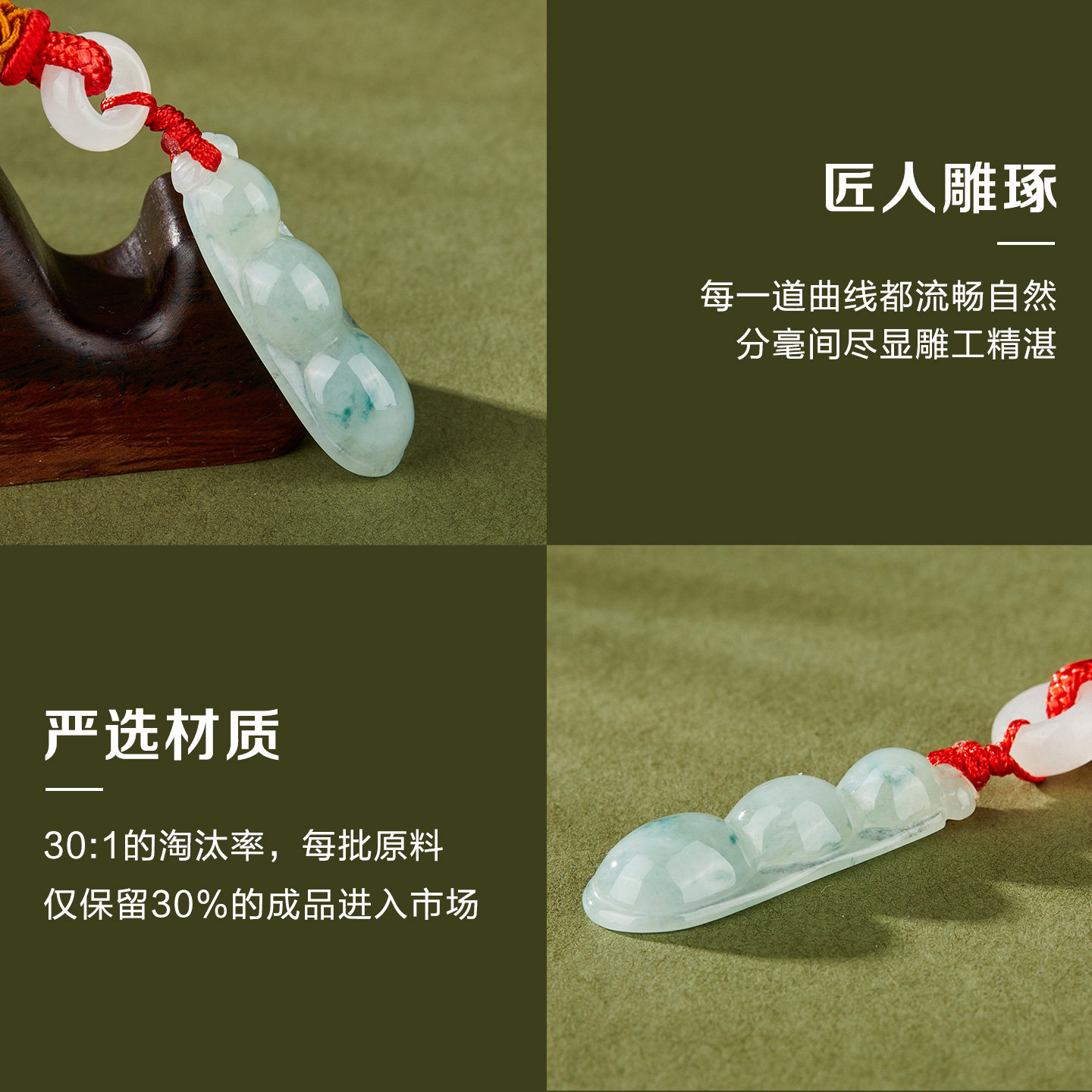 天然翡翠,选料精良,工艺精湛,细节考究