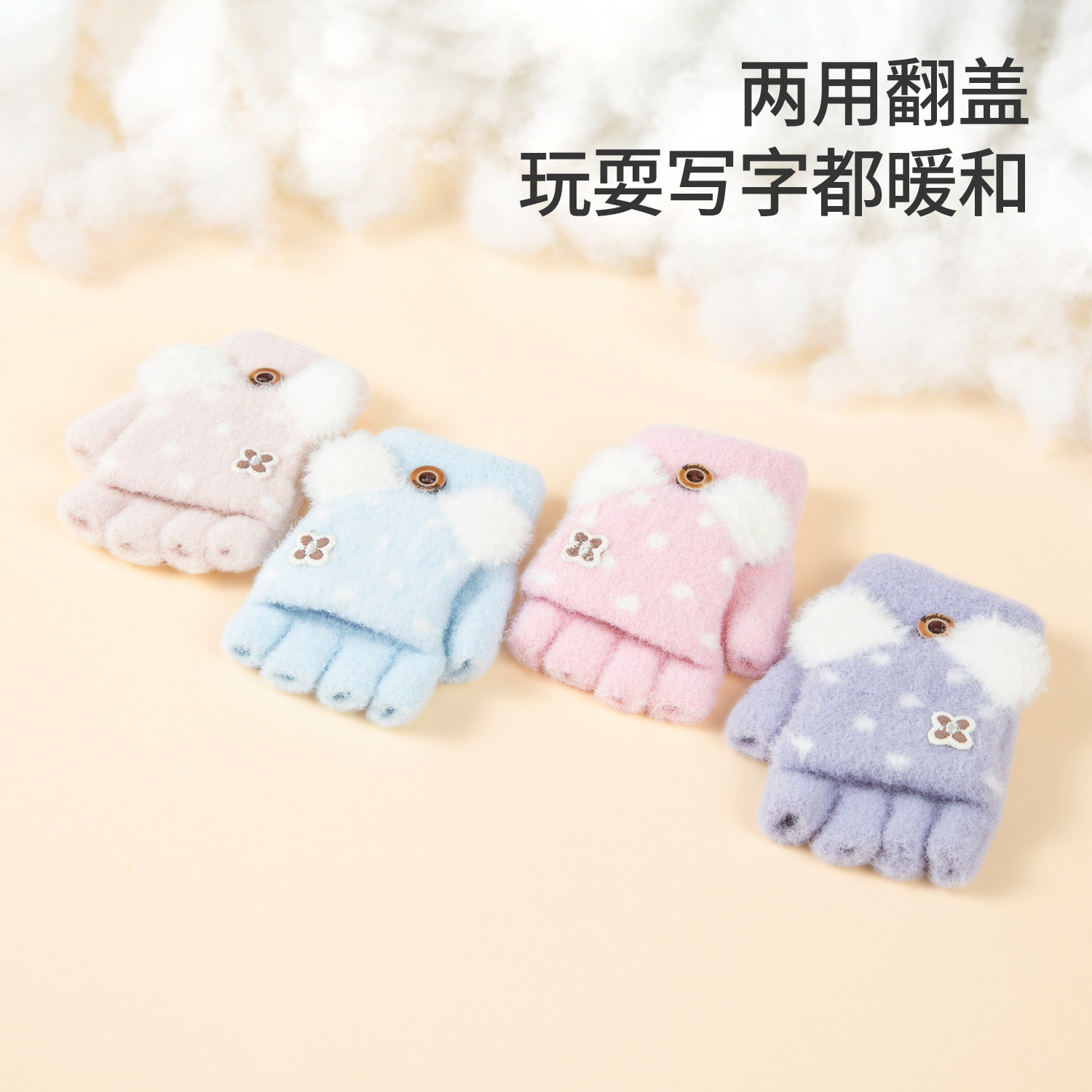 儿童手套冬天女童秋冬加绒宝宝冬季针织翻盖写字五指加厚保暖半指