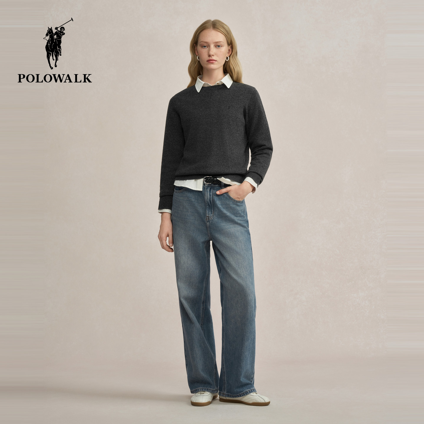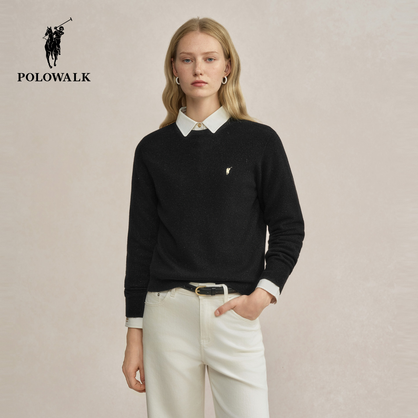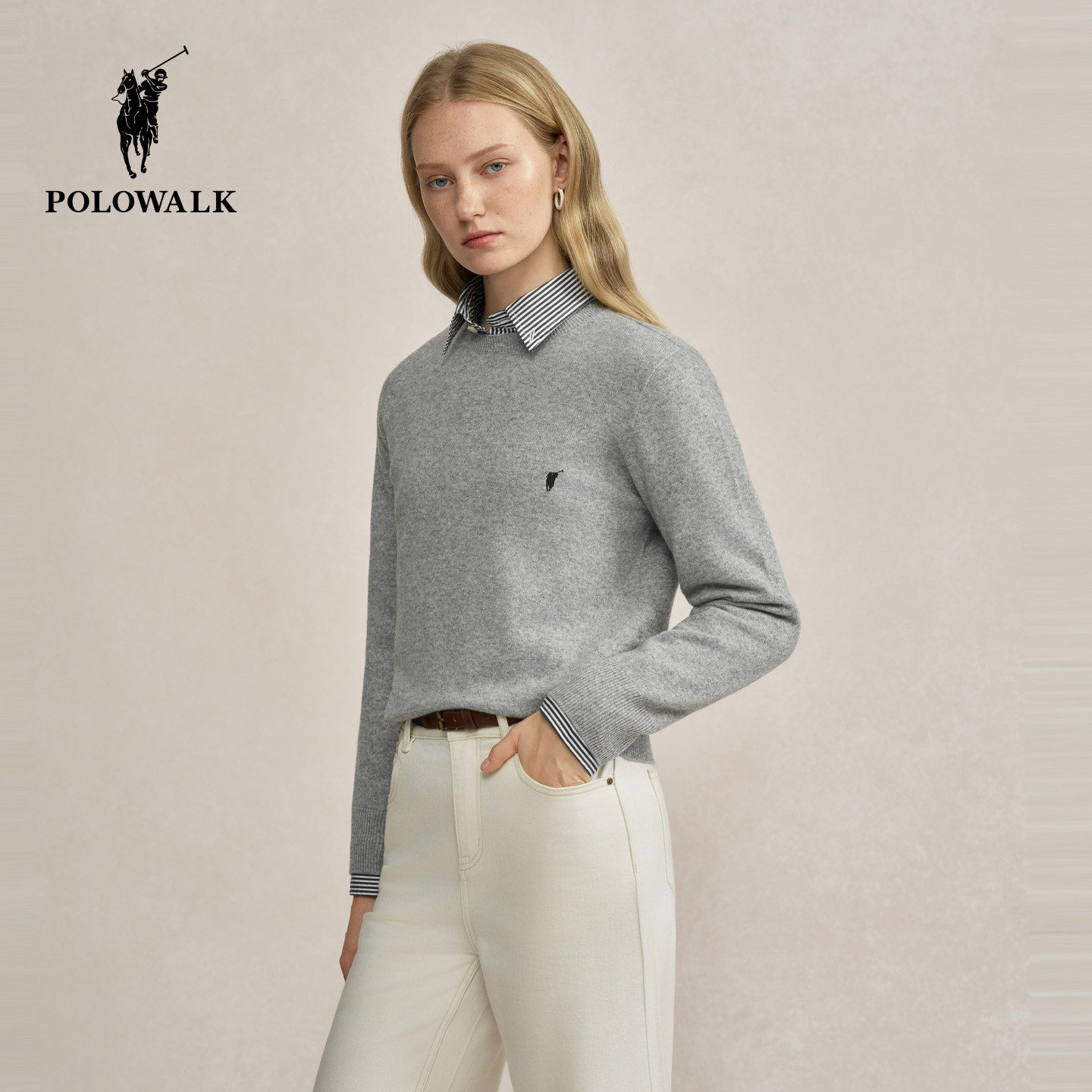 【特惠】【含绵羊毛】POLOWALK女装2026春季针织衫圆领纯色毛衣