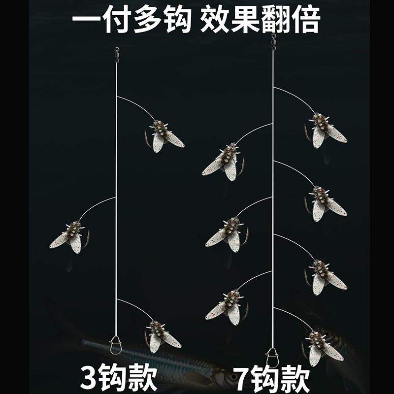 新品路亚仿真苍蝇串钩钓组假饵飞蝇钩软饵线组马口白条七星钩鱼饵