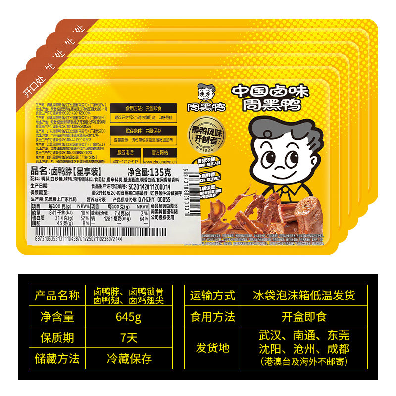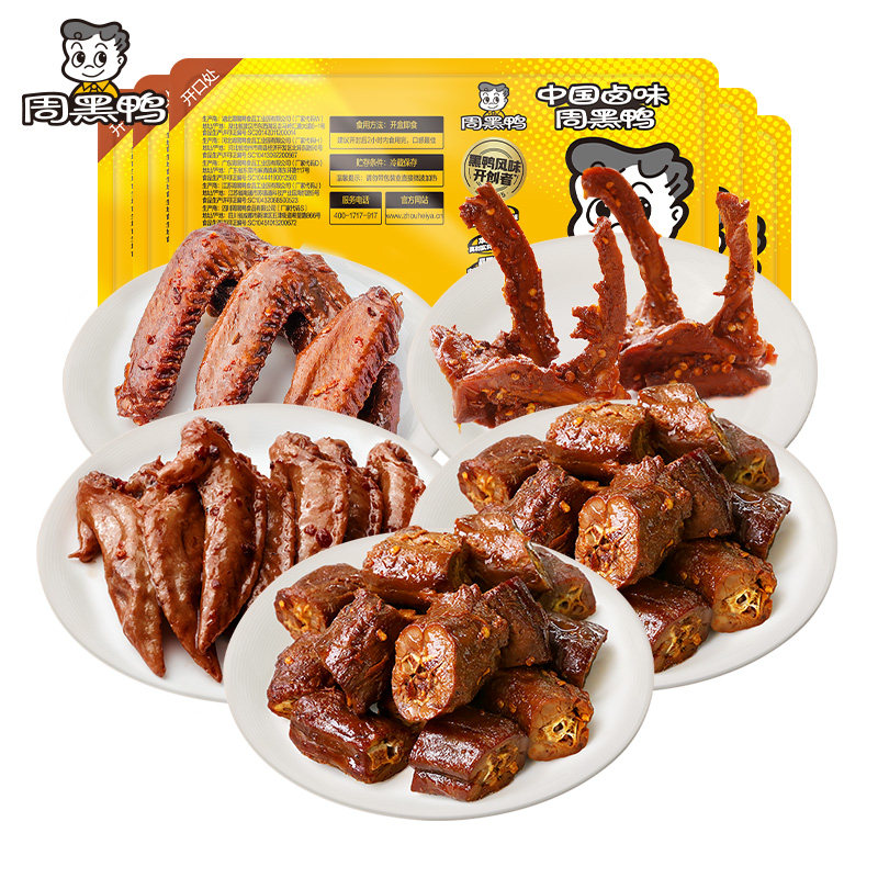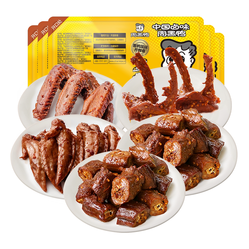周黑鸭锁鲜鸭脖135gX2鸭锁骨150g鸭翅125g鸡翅尖100g小吃零食卤味