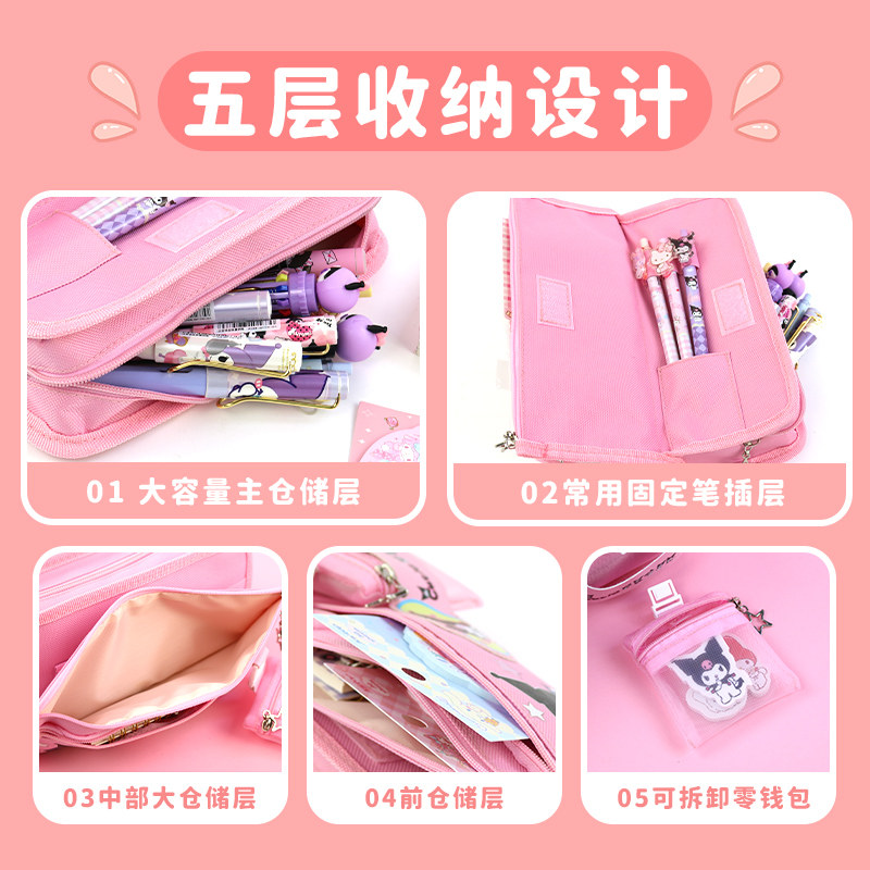 三丽鸥笔袋库洛米文具盒美乐蒂5层中小学生带零钱包大容量铅笔盒
