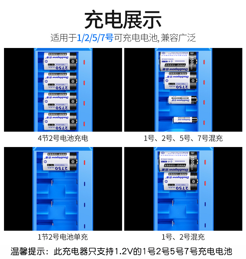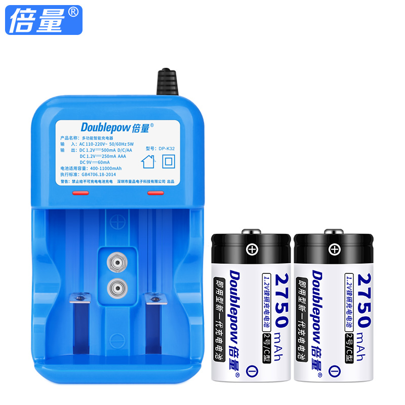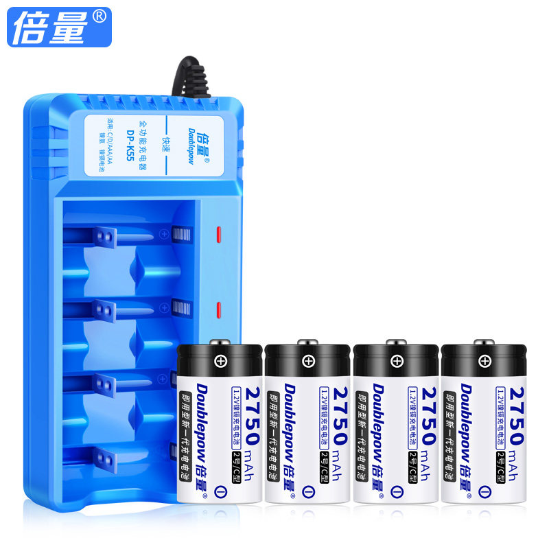倍量2号充电电池多功能充电器1.2V可充电C型二号中号可替1.5V锂电