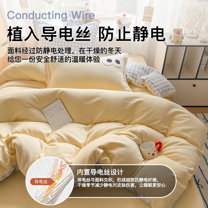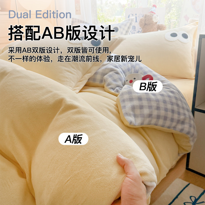 秋冬季加厚四件套牛奶绒被套床单双面加绒被罩床笠学生宿舍三件套