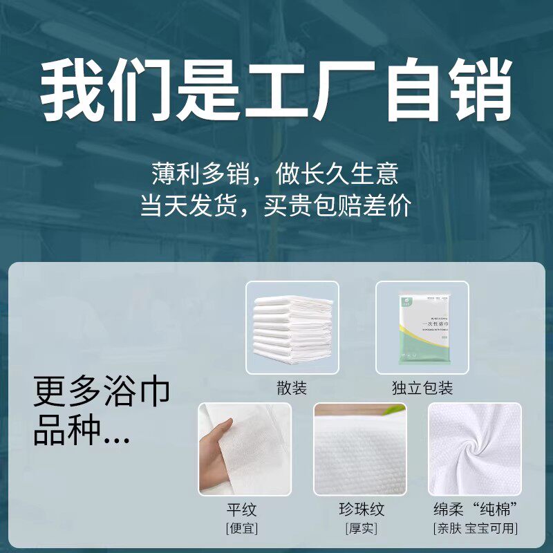 一次性浴巾旅行单独包装加大加厚一次性毛巾压缩纯棉旅游酒店用品