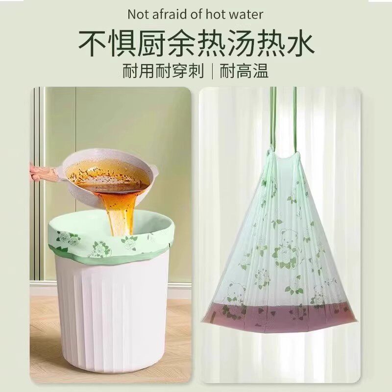 印花抽绳垃圾袋加厚家用手提式厨房清洁大号特厚塑料袋免撕厚款