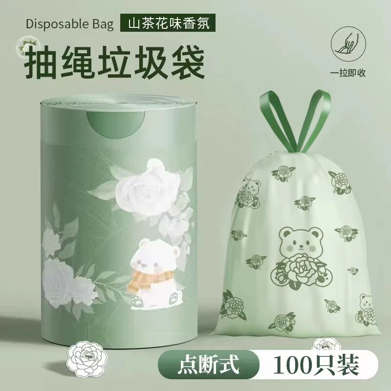 小熊印花垃圾袋家用加厚手提式大号免撕抽绳塑料袋厨房专用