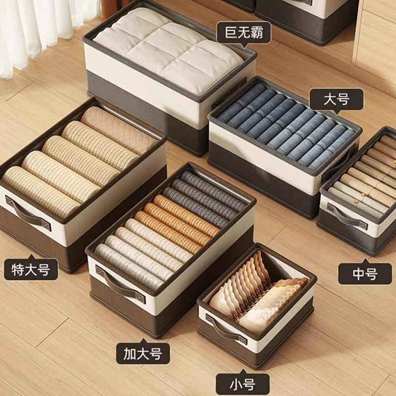 天山棉麻收纳筐衣柜收纳整理分层神器PP板可水洗衣服储物盒收纳箱