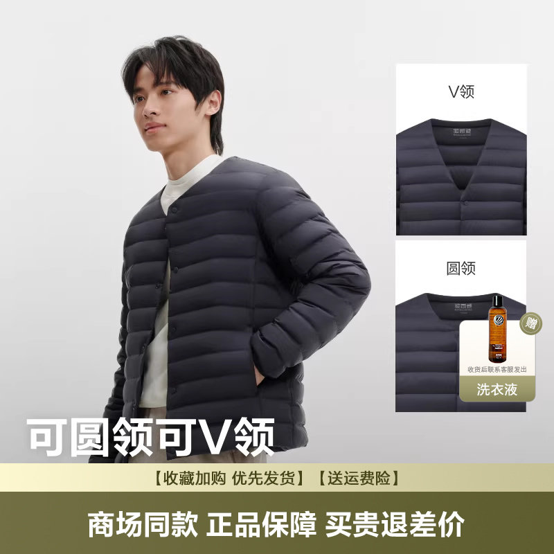 波司登25新款长袖轻薄羽绒服男士短款羽绒马甲羽绒内胆可V领便携