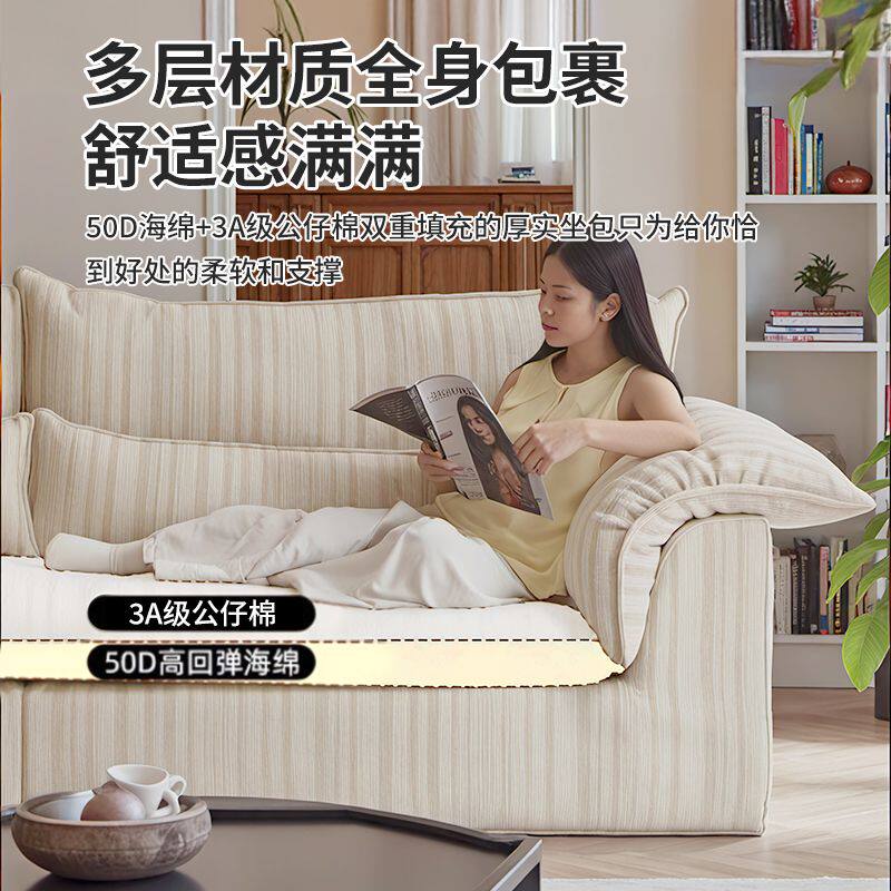 奶油风布艺沙发客厅2025新款小户型家用可拆洗三人位直排云朵沙发