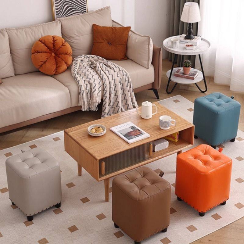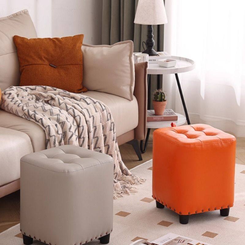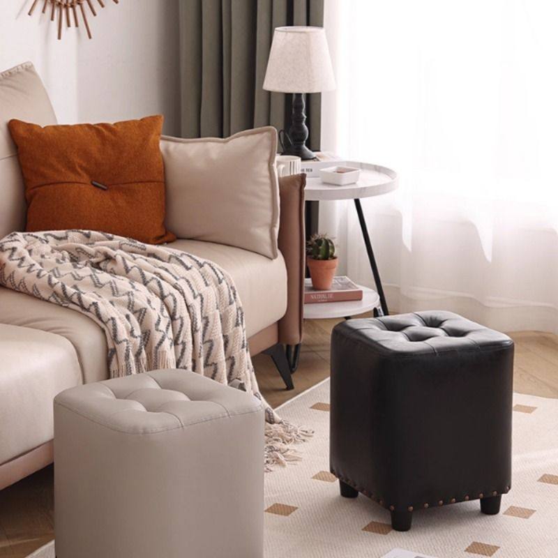 凳子网红皮凳方凳家用圆凳皮墩美式客厅沙发凳懒人换鞋凳矮凳北欧