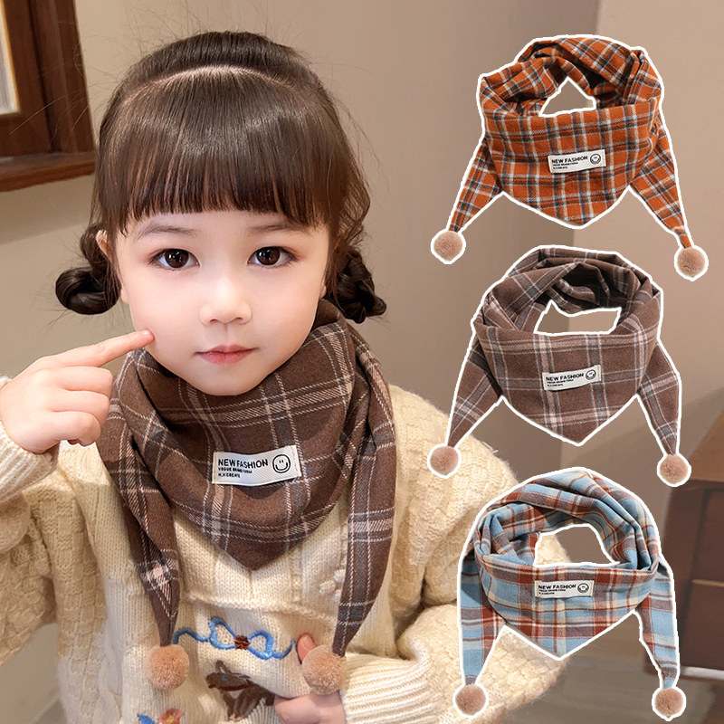 儿童围巾秋冬款保暖婴儿宝宝围脖丝巾新款男童女童三角巾格子防风