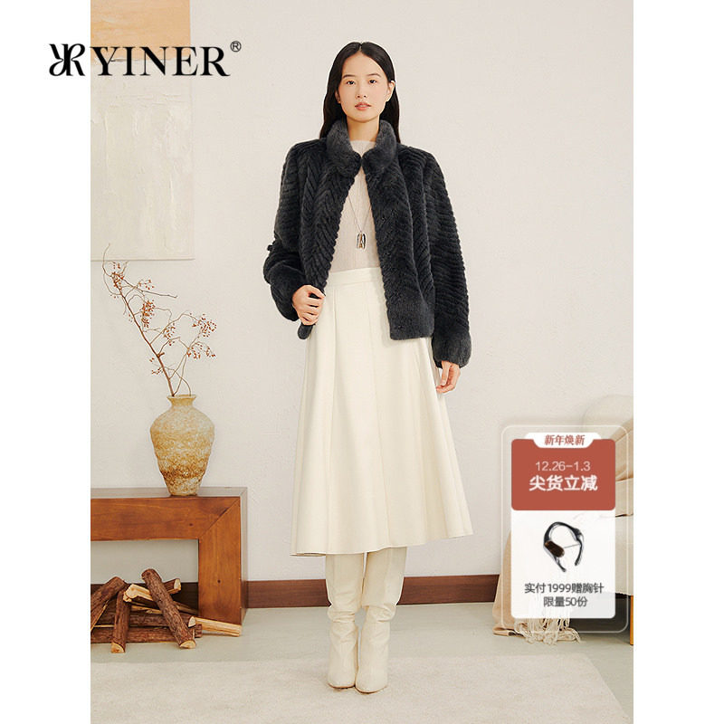 YINER音儿专选2025冬季新款短款波纹立领整貂母貂水貂毛皮草外套