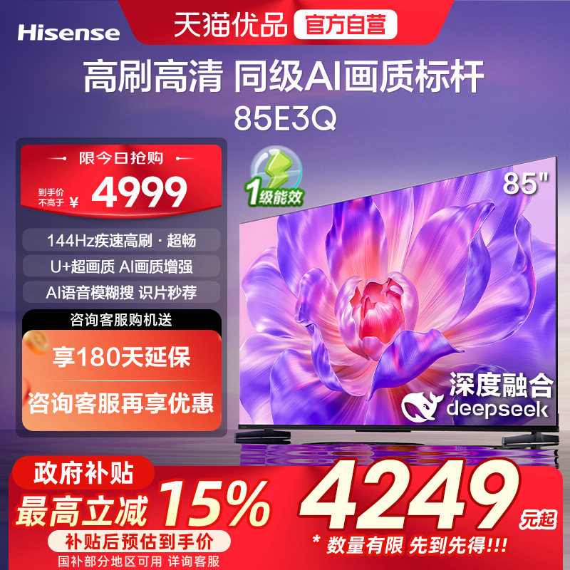 海信电视E3Q85英寸AI智能高刷防抖家用以旧换新补贴电视机