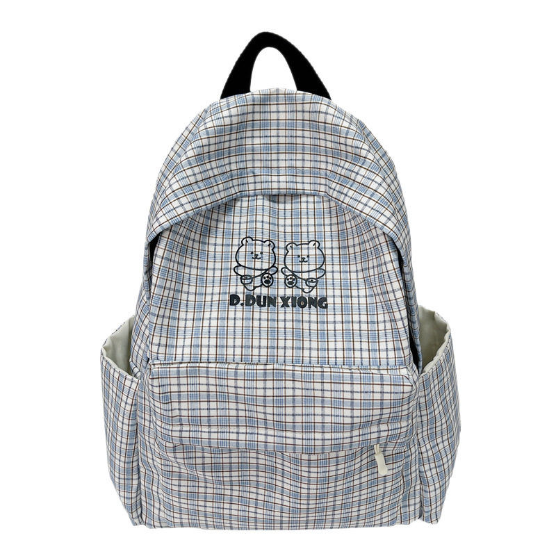 日系文艺格子书包女原宿风大容量初高中学生校园背包大学生双肩包