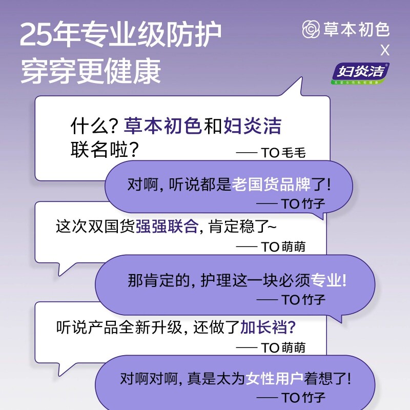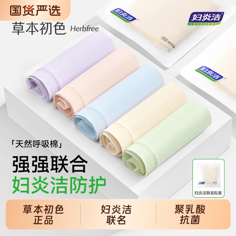 妇炎洁联名款草本初色内裤女士纯棉无痕大码中腰加长裆透气三角裤